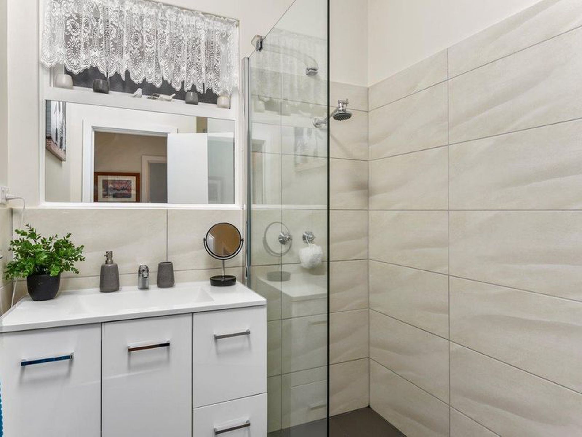 Separate Toilet and adjacent brand new Bathroom has large shower and vanity