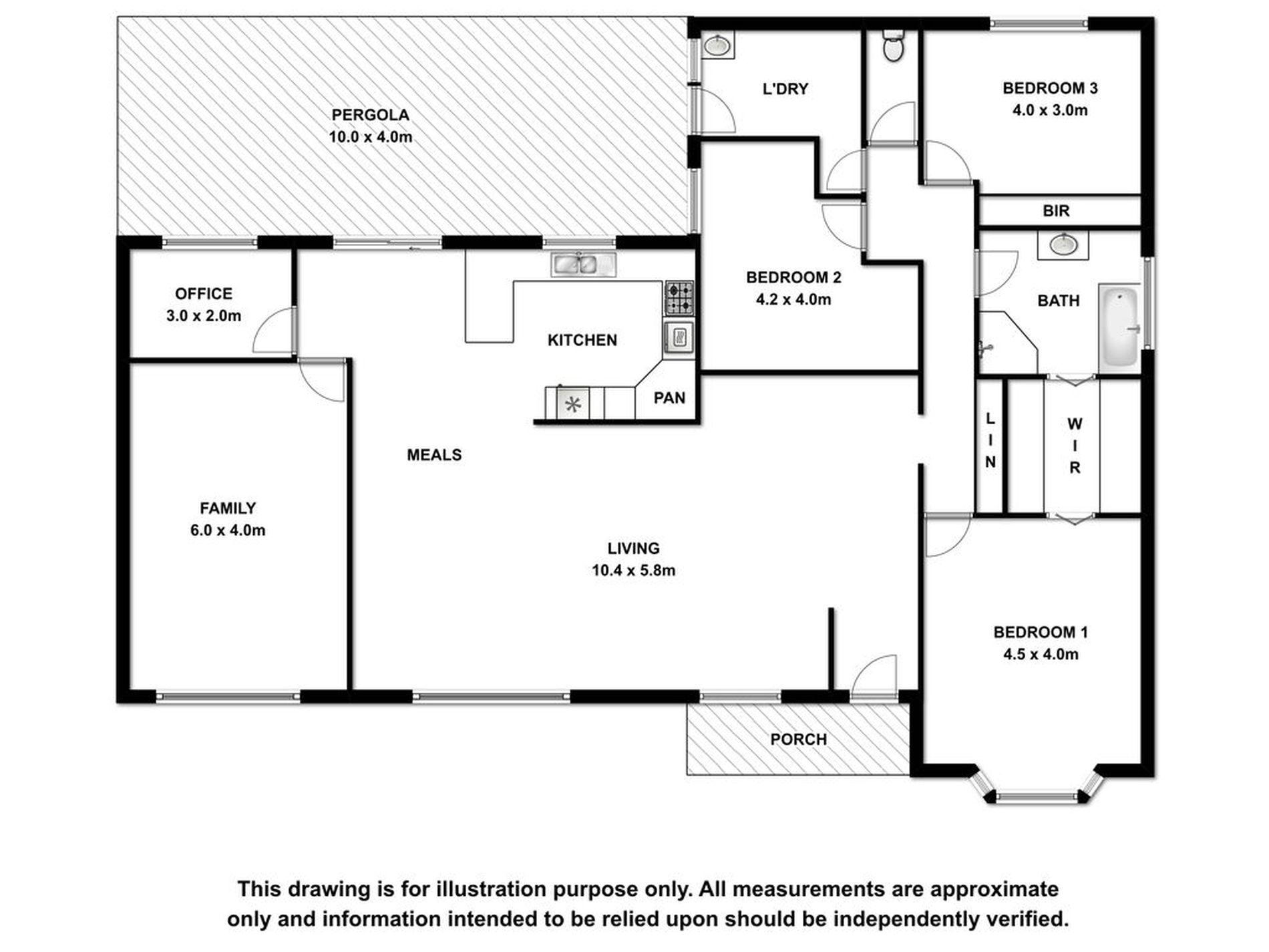 With an access door to the outside pergola and the clothes line, the Laundry is functional and convenient. The Linen Press cupboards are in the hallway.