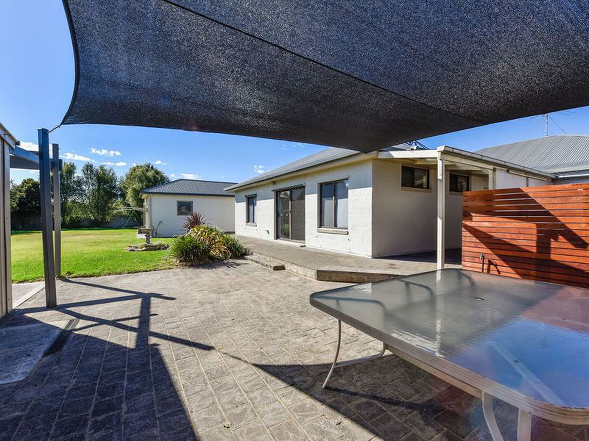You'll admire the fantastically tiled family living/dining room of 9.9m x 5.5m which opens out through sliding doors to sail covered pergola and colorbond shed.