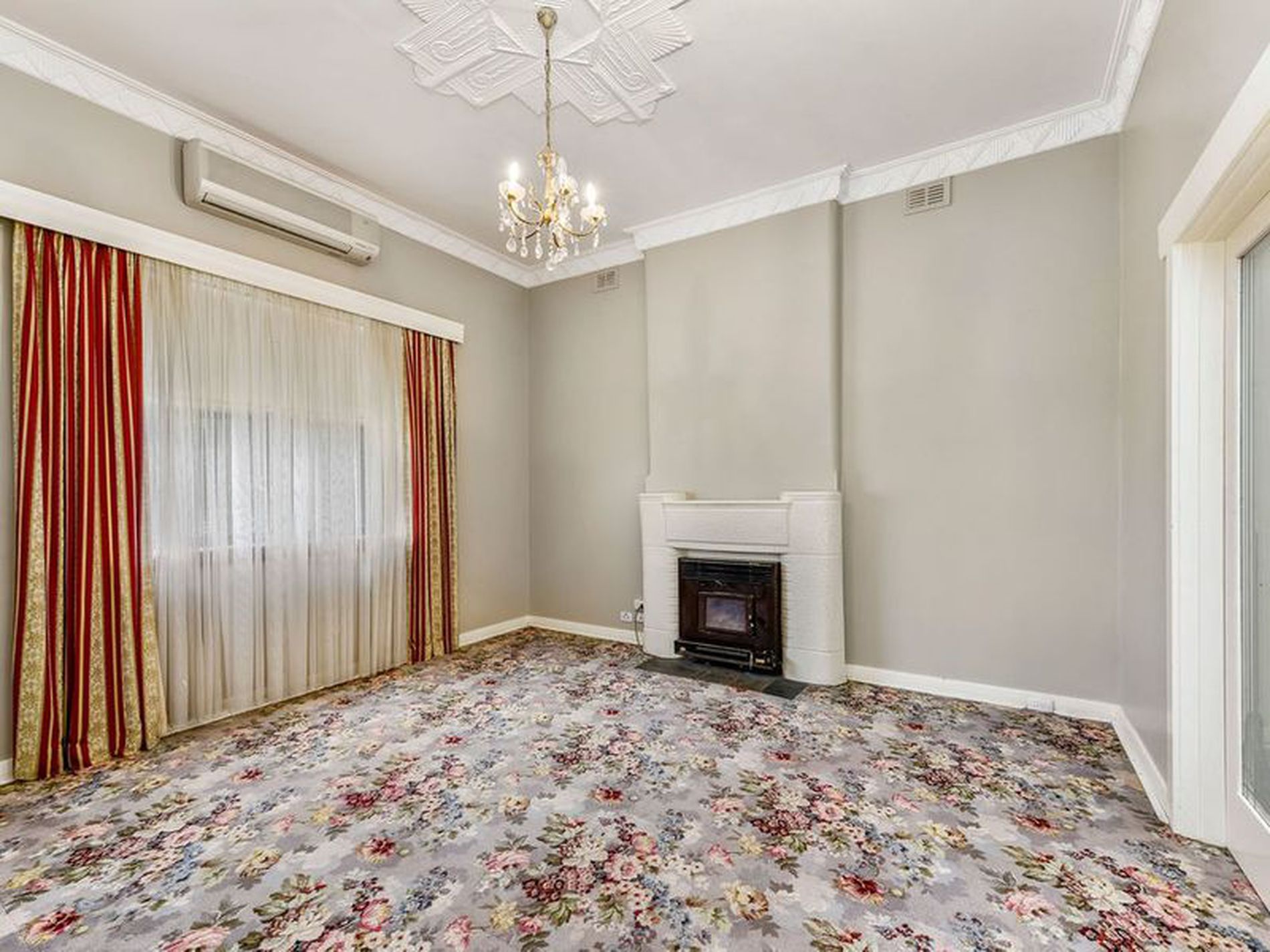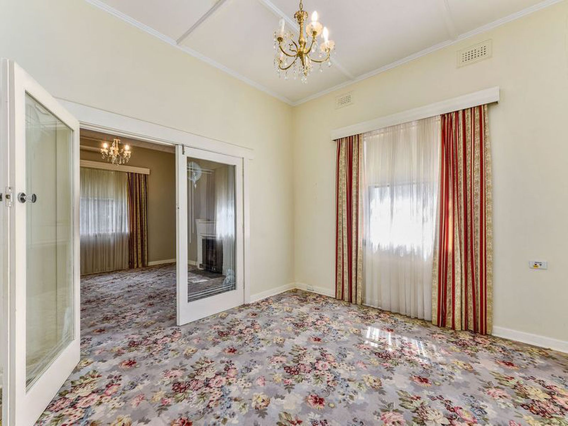 Front porch and wide hallway entrance with quality Axminster carpet to greet you into a home in which is built in 1947. There is still the ornate decor of a time gone by but in excellent condition.
