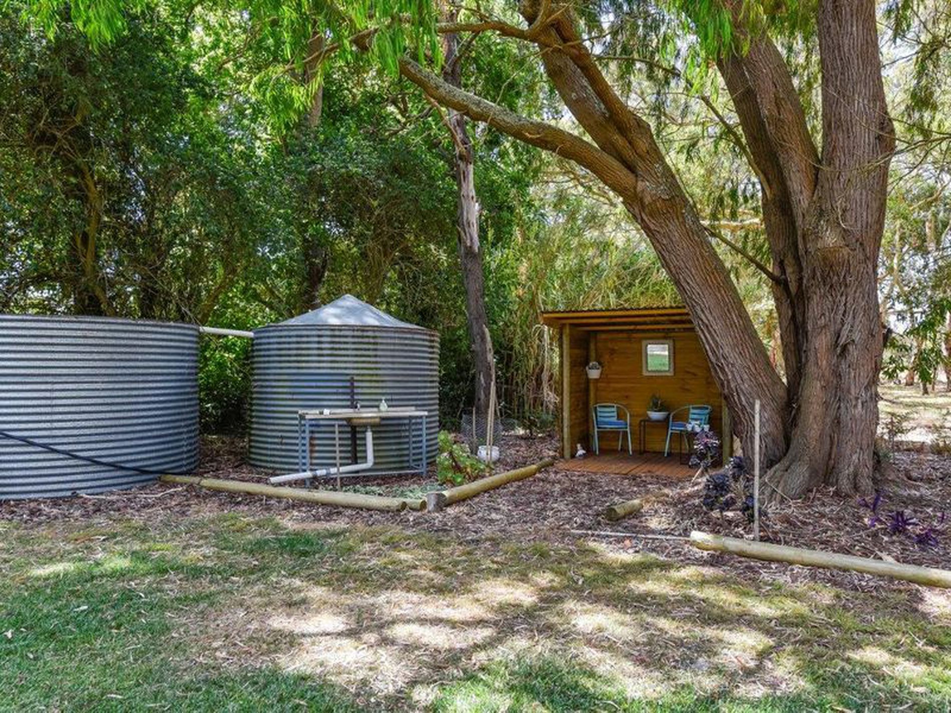 10,000 gallon rain water plus small catchment tanks of sheds, Equipped bore services the garden and toilet.