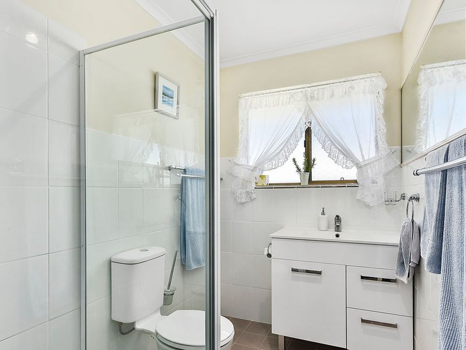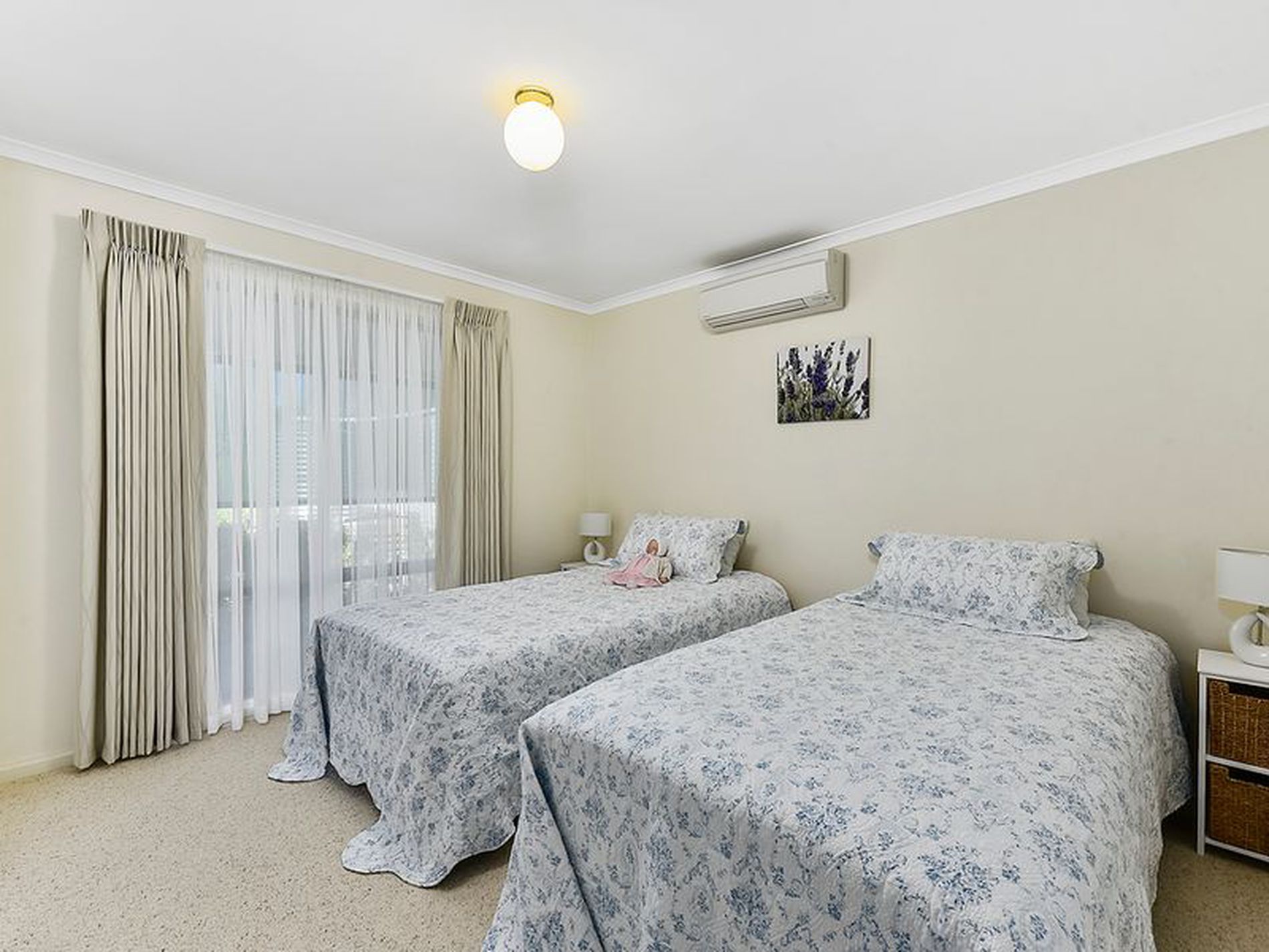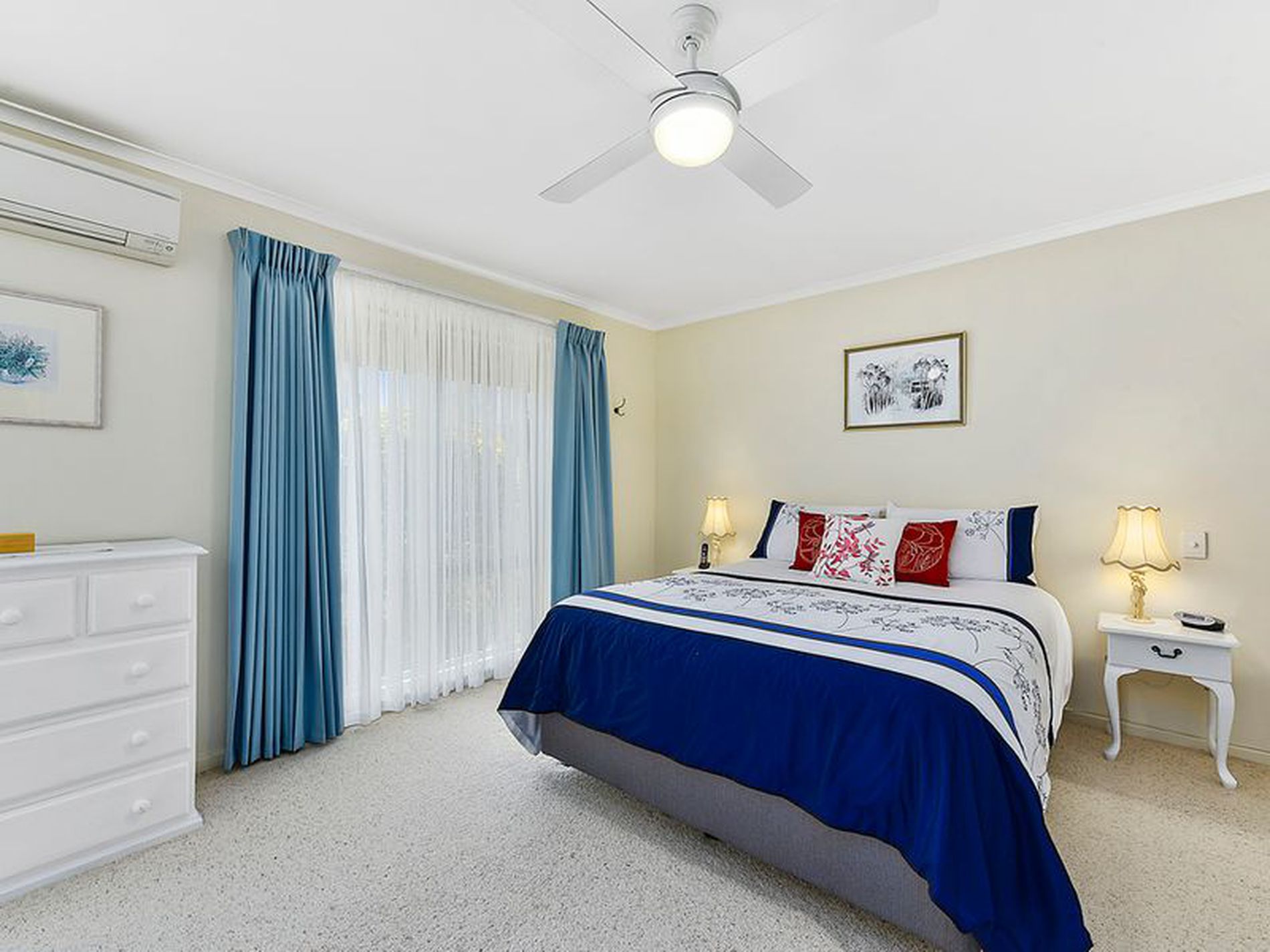 There are three bedrooms, two and three are both good size doubles, carpeted and with built in robes. Bedroom two has its own R/C air conditioning. The master suite is a retreat with a dressing area providing a dressing table and wall of built in robes. Renovated ensuite with shower, vanity and toilet, R/C air conditioning and ceiling fan.