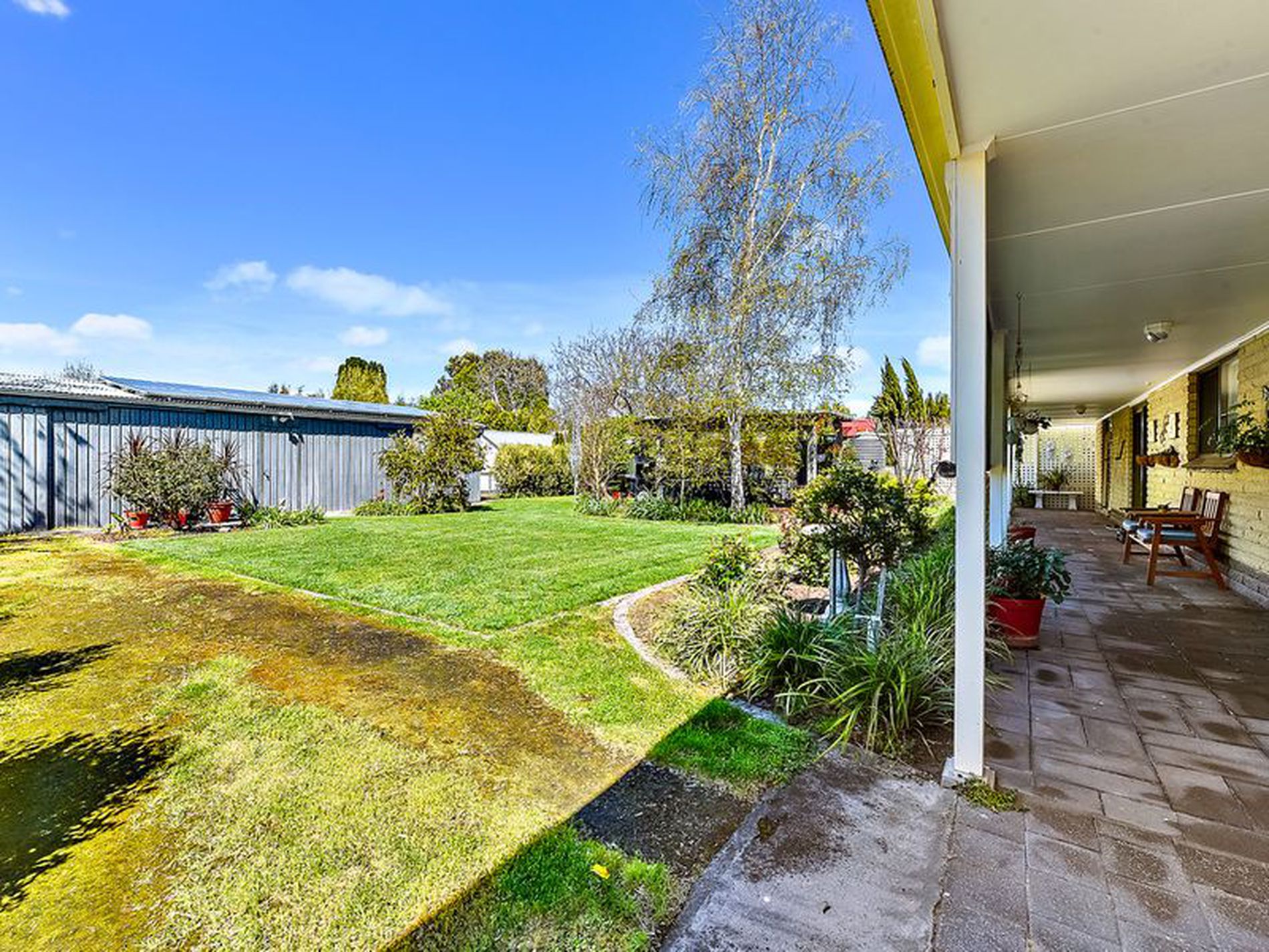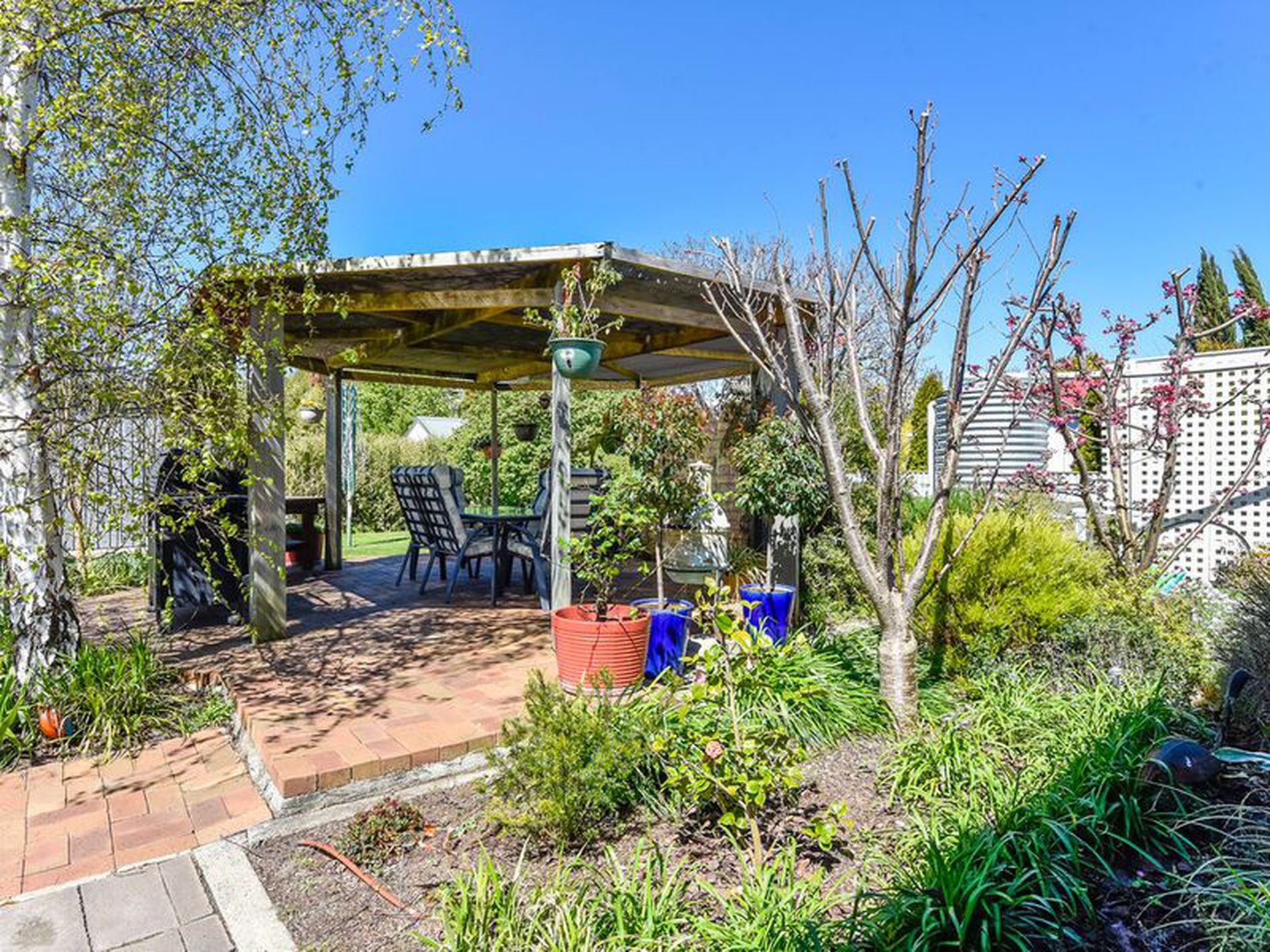 Outside the established garden is easy care. The paved pergola area invites you to sit amongst the lovely surrounds and relax. You have a veggie garden with raised beds and a caged orchard hidden away at the rear of the yard and easy to maintain. The submerged pump and bore waters the garden with automatic pop up sprinklers on the lawns and semi-automatic over the garden beds. A small rainwater tank is plumbed to the kitchen sink. A huge 5 bay shed sits at the rear of the block with cement floor, power and built in benches.
