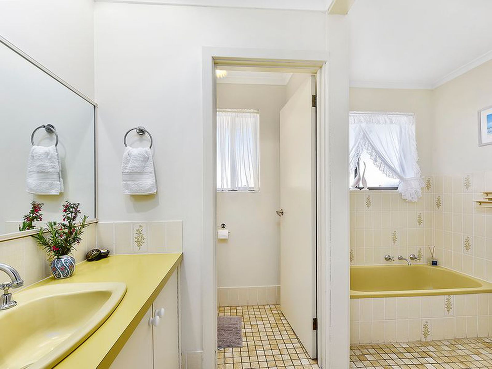 The main bathroom services the other two bedrooms. It is tiled and has a separate shower, bath and vanity area. There is also a separate toilet. The laundry is tiled has a rear door and cupboards.