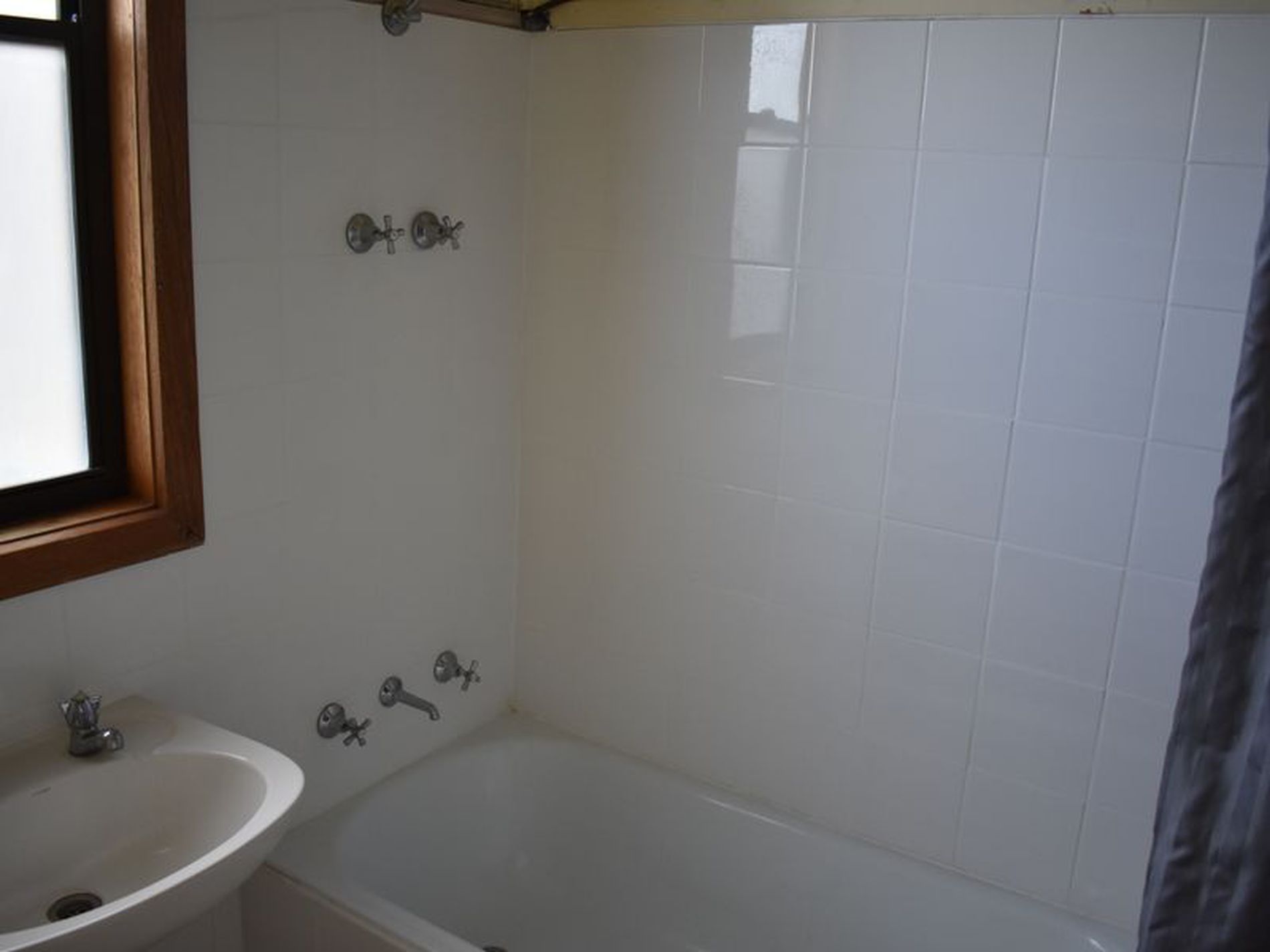 The Bathroom has toilet, pedestal vanity and shower over the bath. The electric H/W service is in the bathroom.