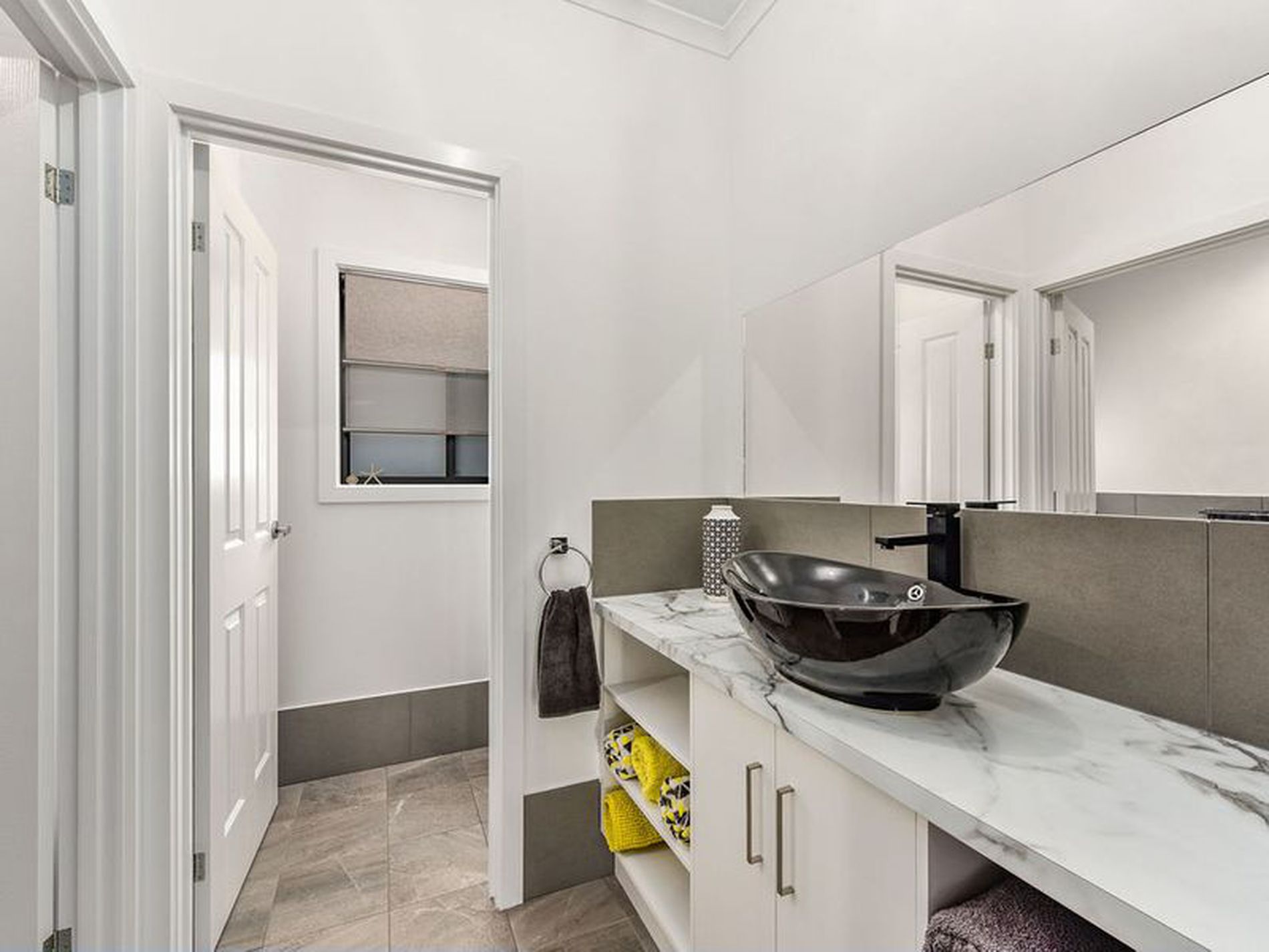 The tiled master bathroom is modern and neutral, you can soak your worries away in the luxurious bath while the frameless shower screen makes cleaning a breeze, along with the powder room and separate toilet the morning rush is taken care of.