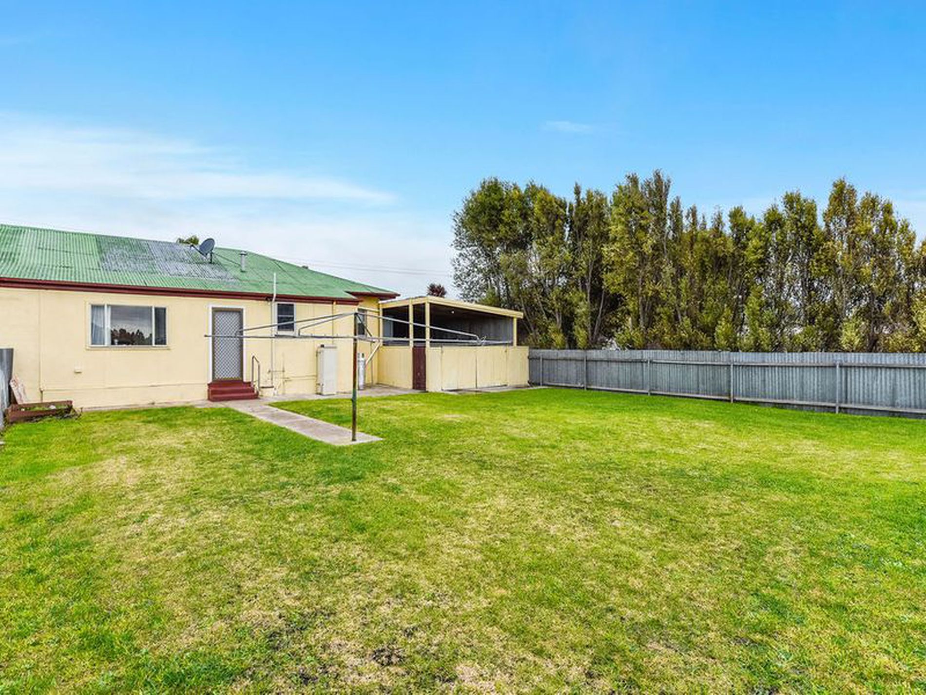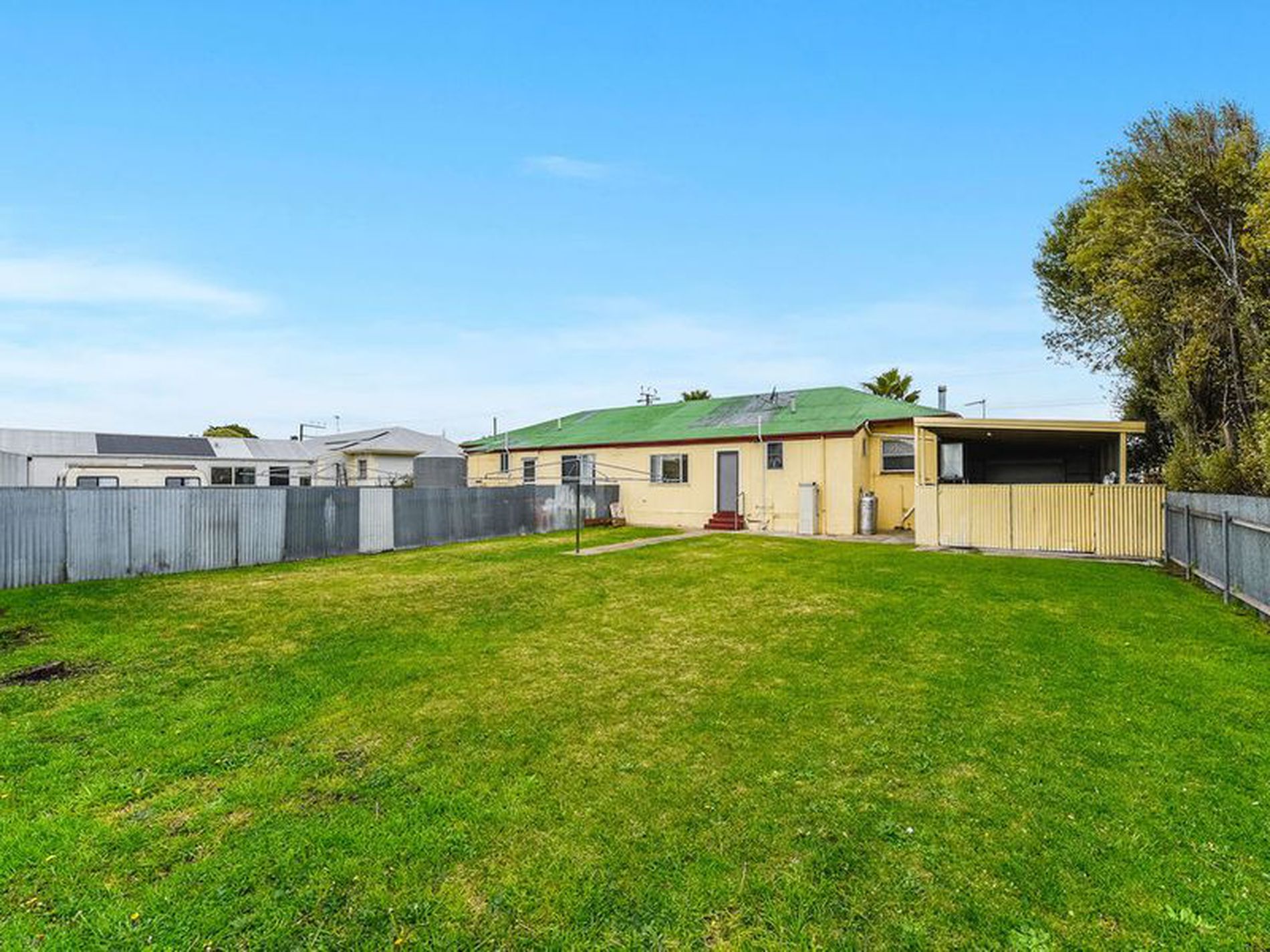 A 15 metre long Carport with a single roller door. Rear part makes a great enclosed pergola sitting area and double gates through to the back yard.