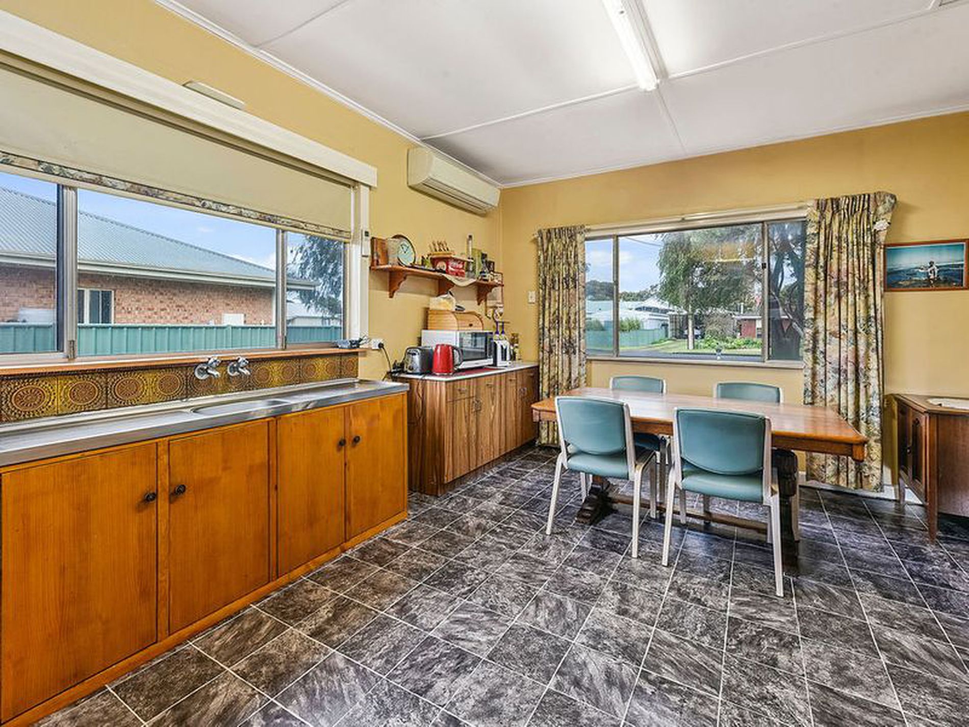 Enter into the lounge where the warmth of the large slow combustion wood heater will keep you comfortable throughout winter. Plus a Reverse Cycle air conditioning unit in the kitchen.