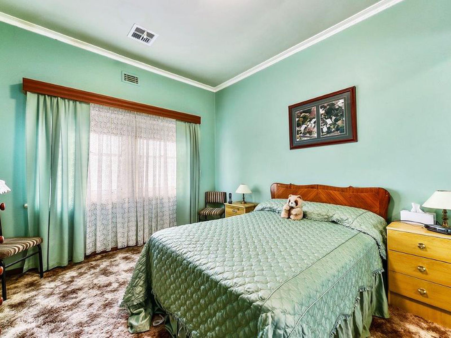 The Bathroom has a pedestal hand basin, deep bath, separate shower, wall mounted heater and vanity cabinet, plus off the laundry is a separate toilet and hand basin. Linen press in passage.