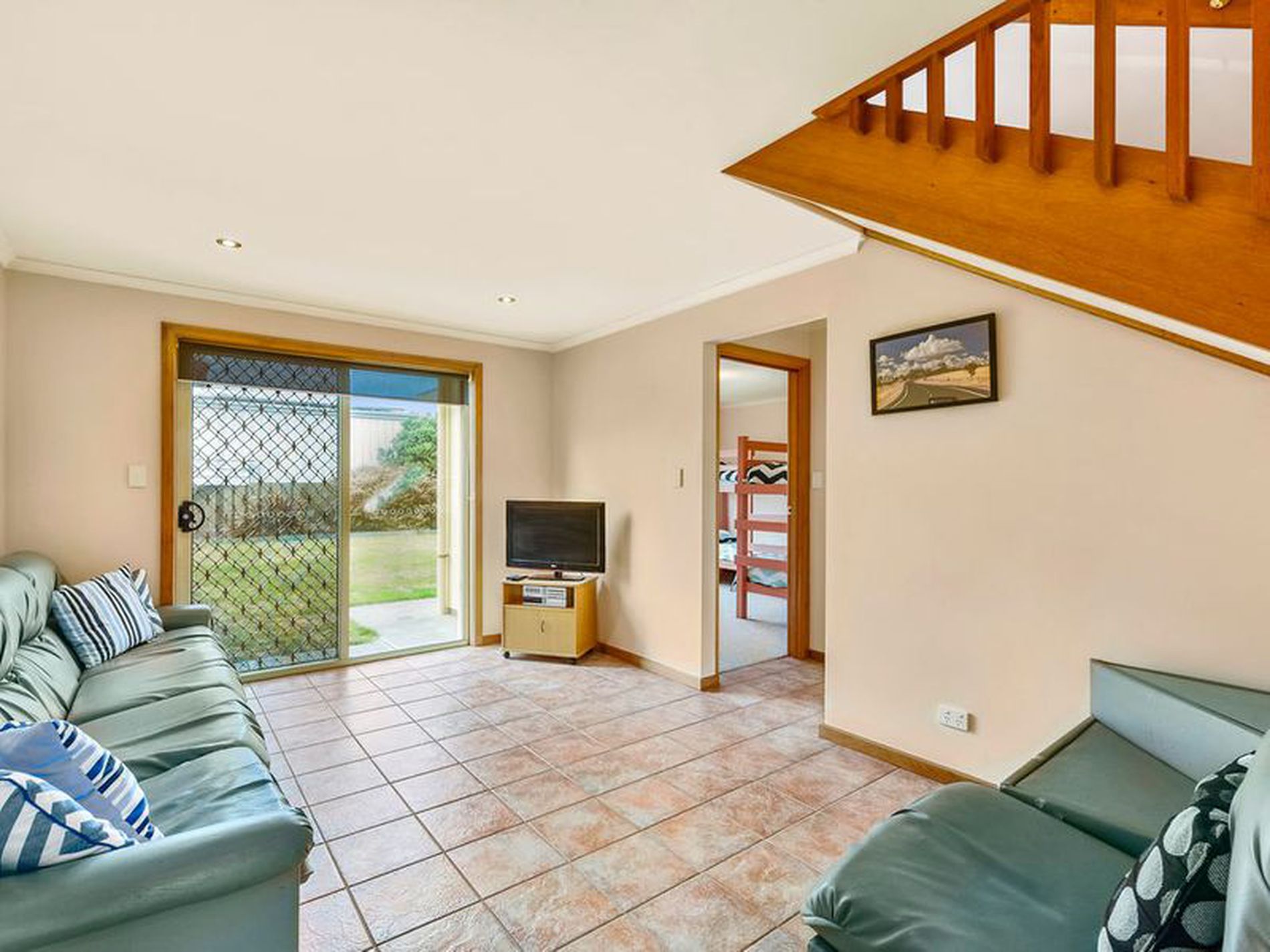 The property is decorated in neutral tones throughout, all three bedrooms are all carpeted with the living areas tiled.
