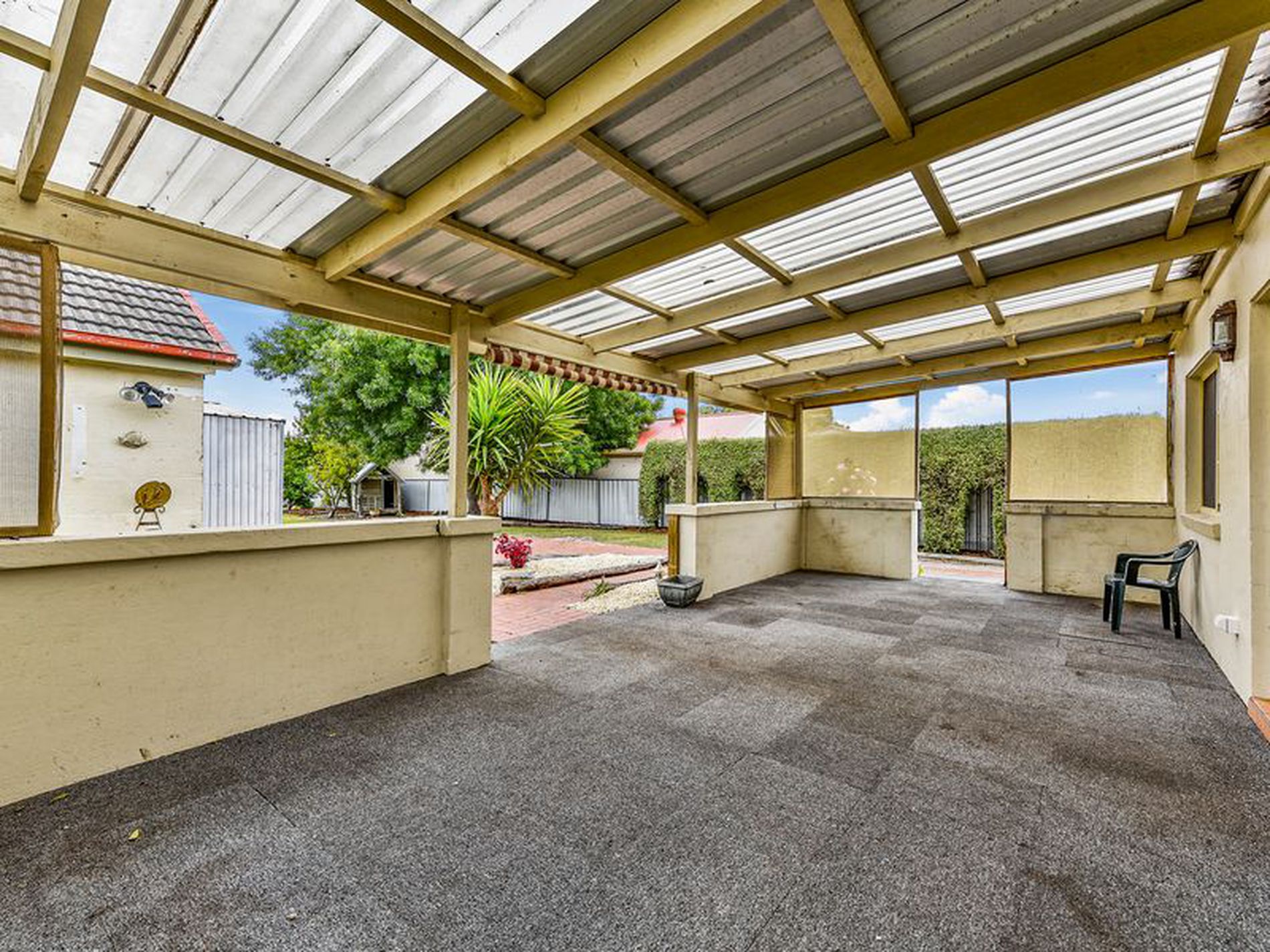 Rear yard access is down the side of the home and leads to the established, low maintenance yard. You have a single stone shed and a double iron shed both with cement floor and power. A pump and bore service the yard, you have rainwater over the sink and the house is on town water and sewer.