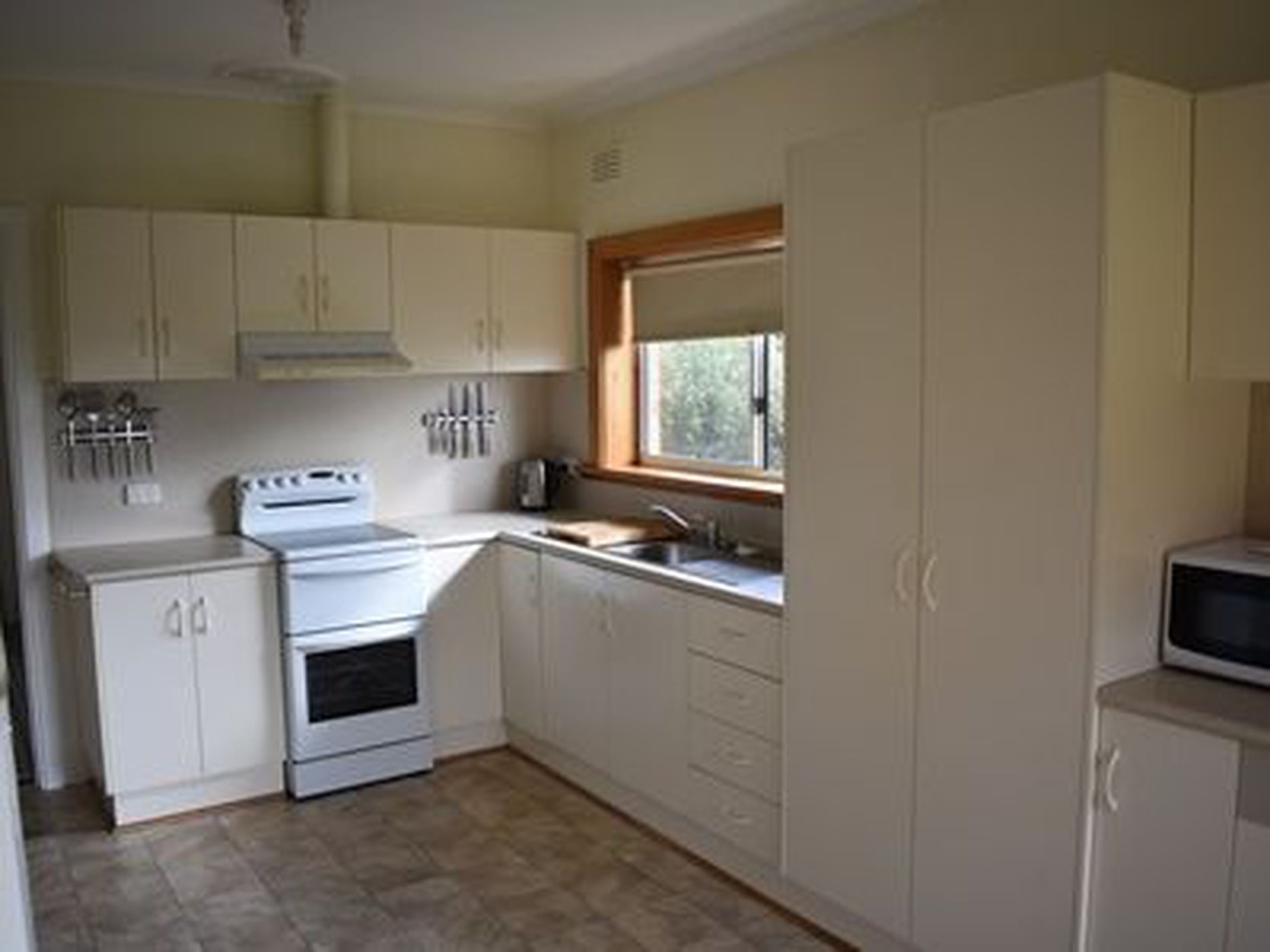 Updated Kitchen with abundance of cupboards, electric oven / cooktop