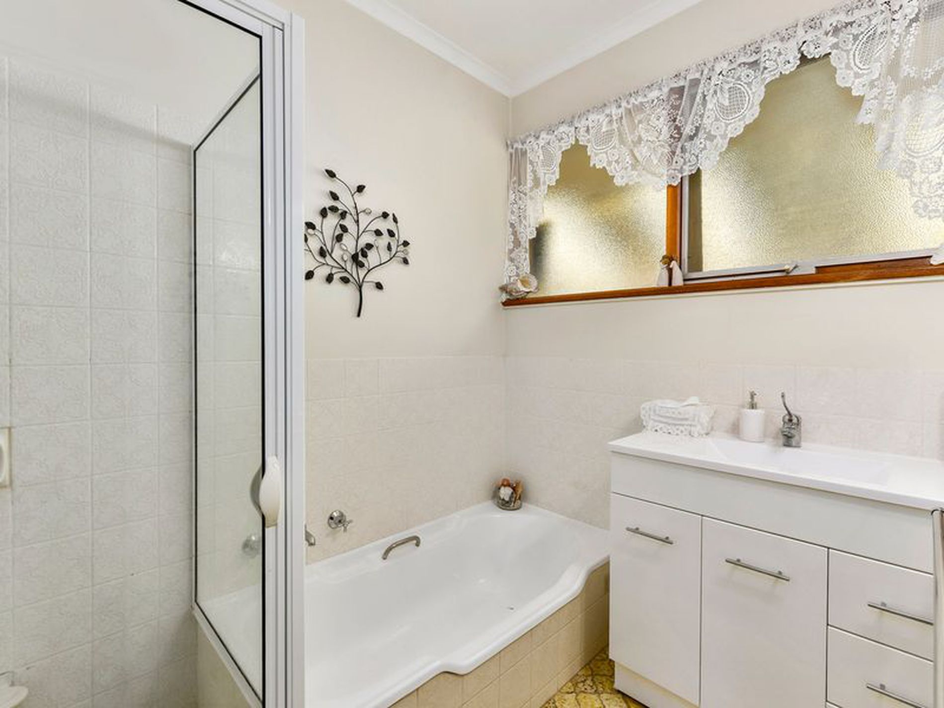 • Neat and tidy bathroom with separate bath, shower and a vanity