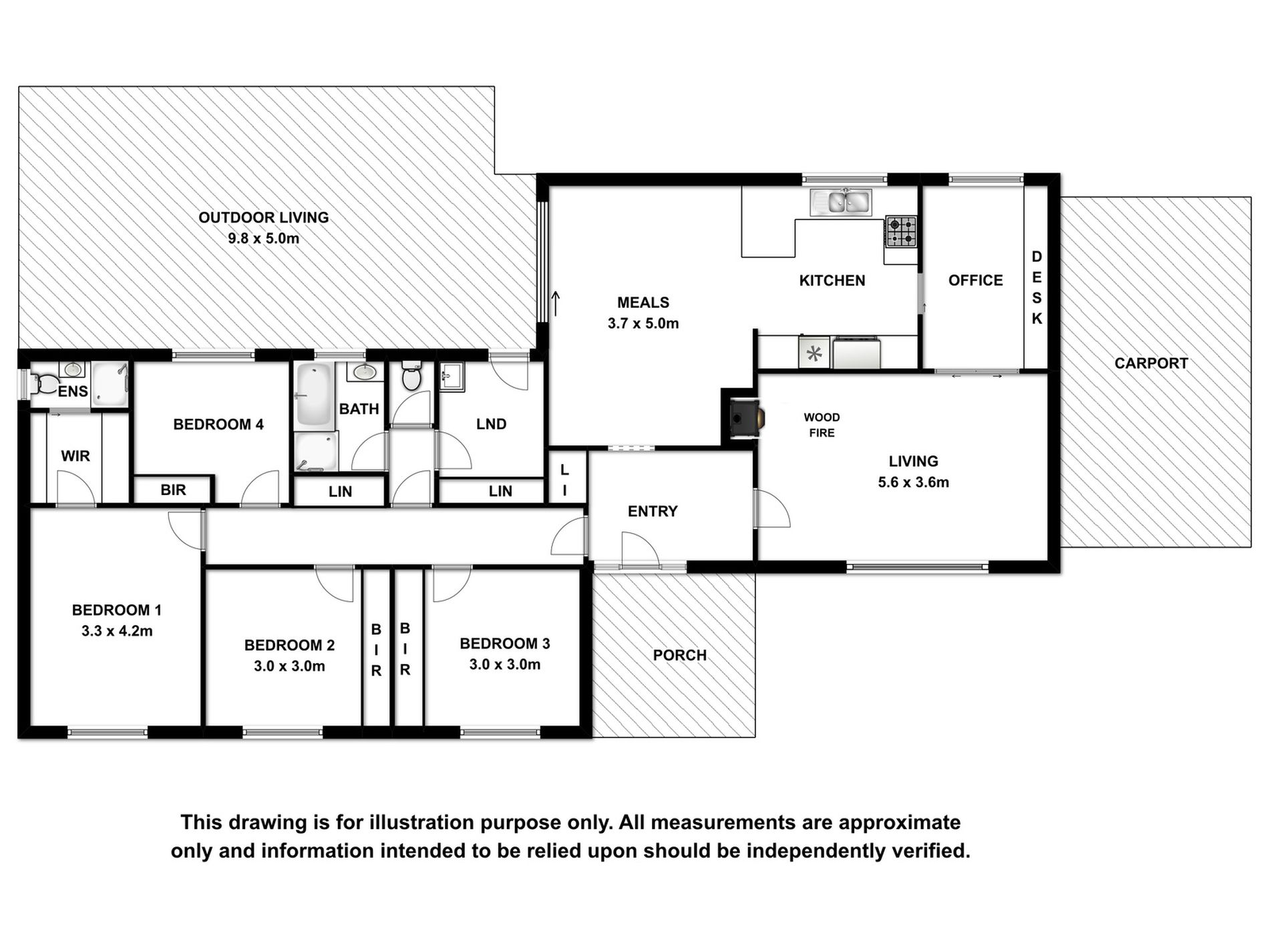 • Large separate lounge room with reverse cycle air conditioning and wood heating