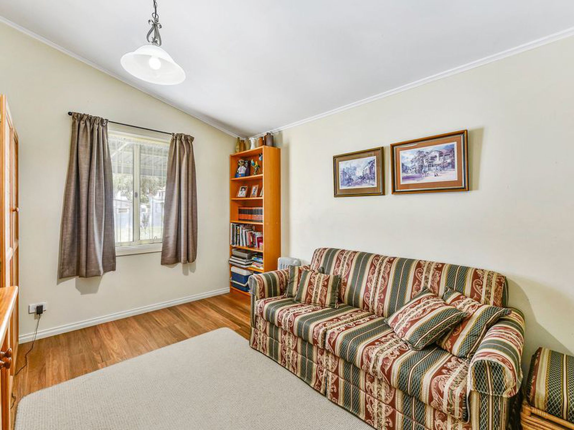 Timber floating floor in the 3rd bedroom off the sunroom, used as a TV room and small office or storage room.