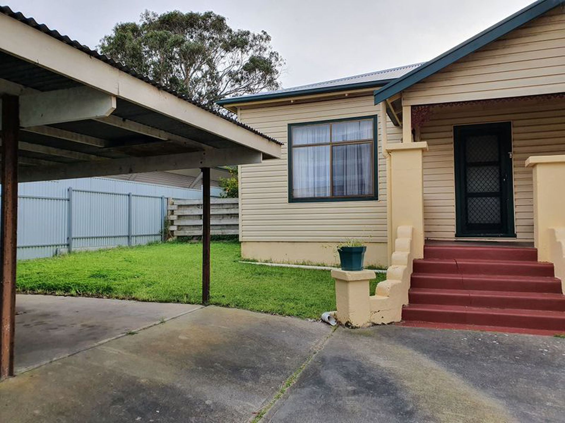 Double carport at the front and single garage on side of home