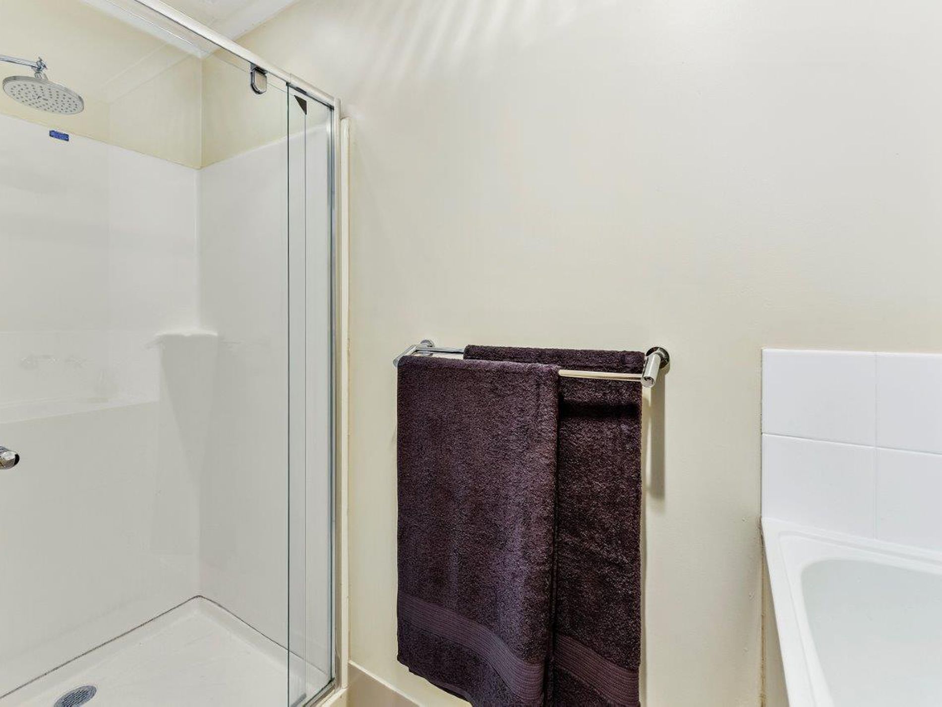 Updated bathroom with vanity with toilet adjacent. Shower in with laundry facilities