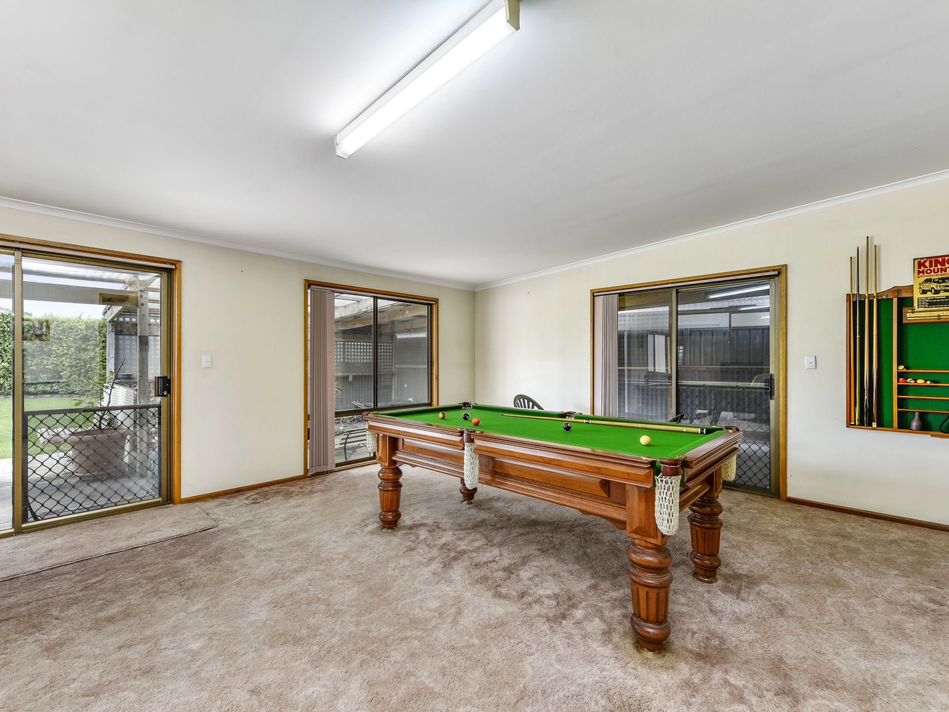 Front lounge has Combustion fire and Reverse Cycle air conditioner, plus built-in TV unit cabinetry.