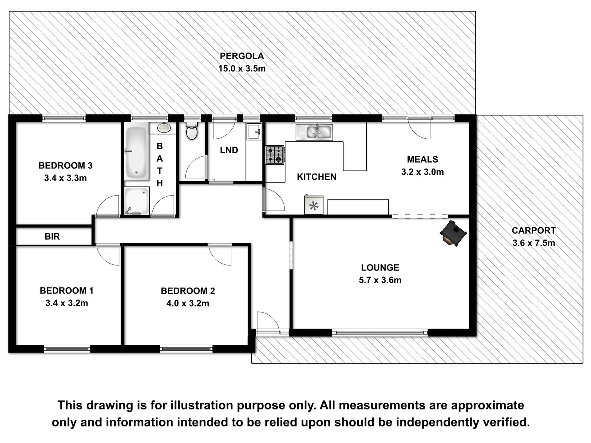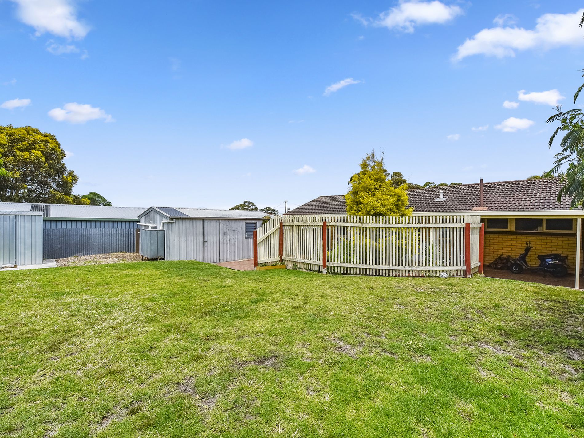 There are three carpeted bedrooms all with ceiling fans and the master with built in robe. A renovated bathroom has bath, shower and vanity. The white tiles and grey floor make it bright and modern. The toilet is separate. The laundry has also been renovated with new cabinetry and benchtops and has an external door.You have a Full length rear paved veranda, perfect for entertaining with gorgeous garden setting, garden/wood shed and a Single G/I garage with concrete flooring and power. The Carport is high enough and big enough for a caravan. The rear yard is fully enclosed.