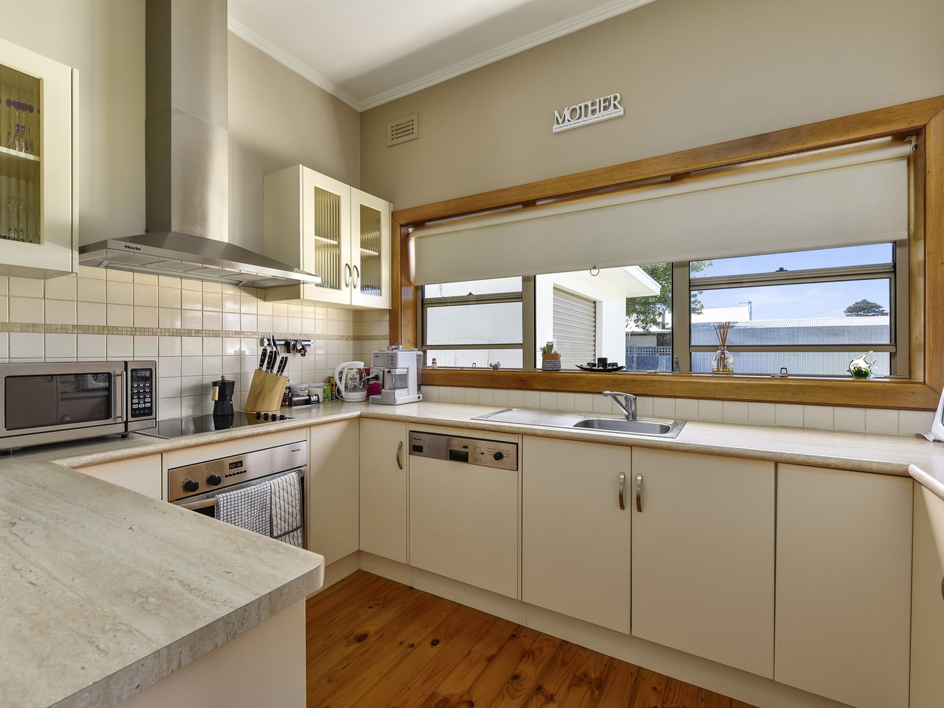 - Lovely modern neutral kitchen featuring, Miele appliances of Dishwasher, electric cook top and oven.