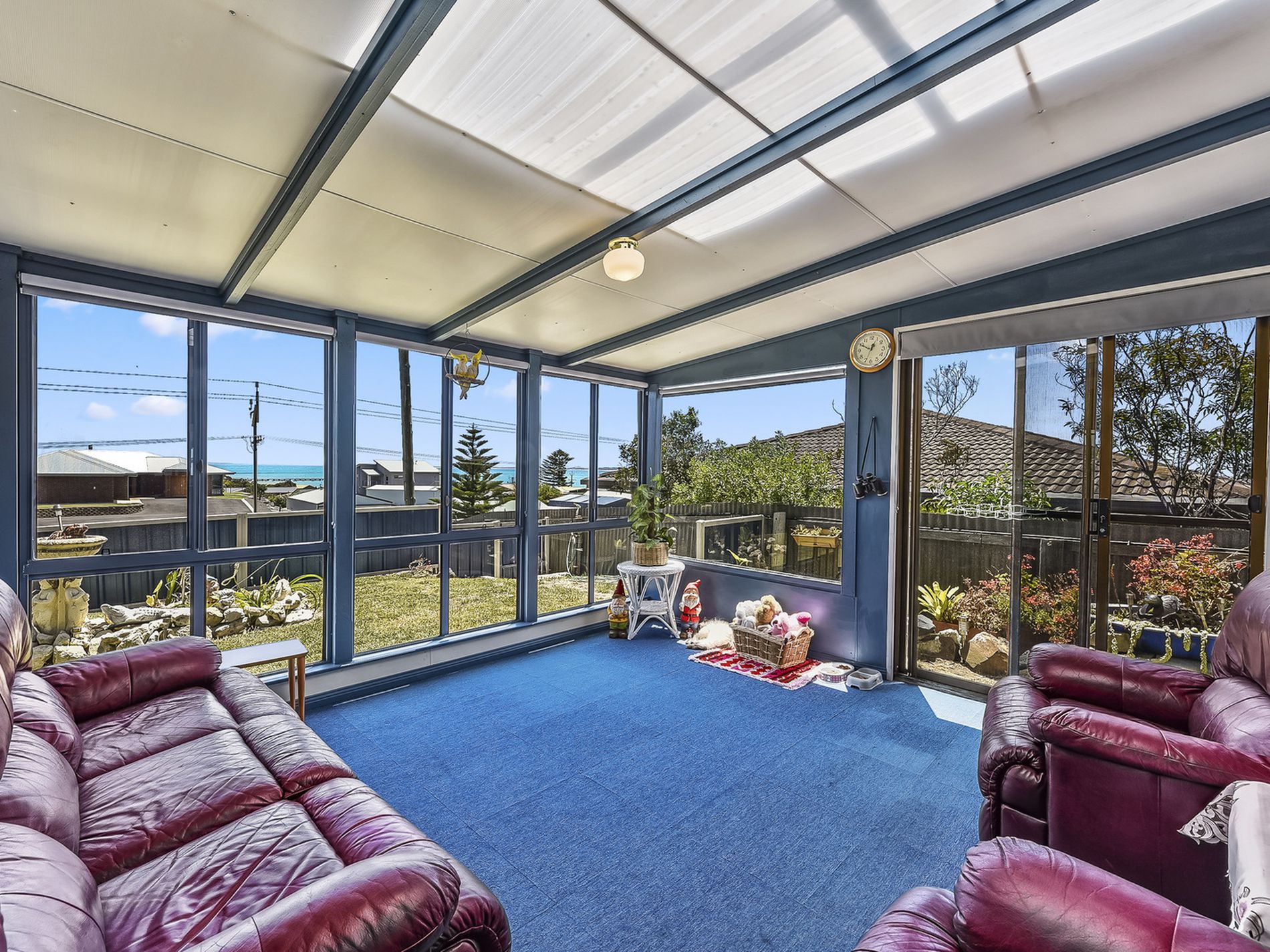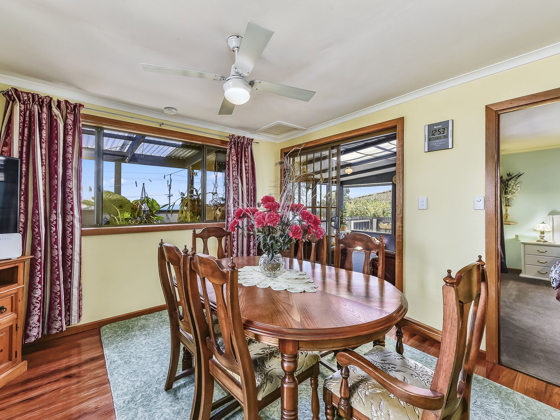Featuring a timber Kitchen with Electric H/P's, stove & grill. Dining room has a wonderful view of ocean and sliding door access to front paved enclosed porch.