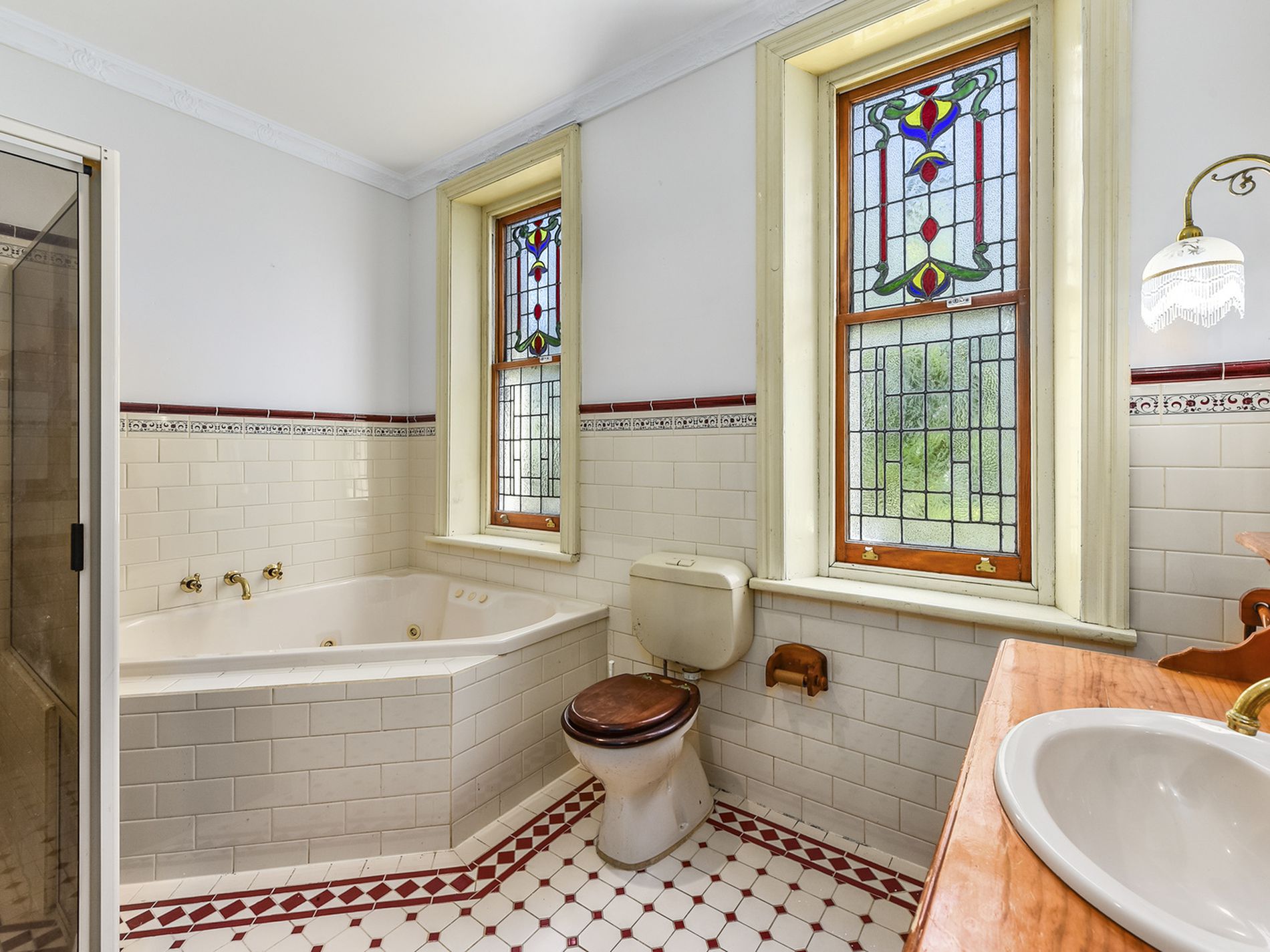 The home itself is super spacious with large rooms and wide hallways. The lounge sits at the front of the home. It boasts ornate cornice, ceiling rose, original skirtings, polished timber floors and a slow combustion wood fire sits under the mantle in the fireplace. There are four huge bedrooms one with built in robes, one with carpet and three with original timber floors. One has an open fire place. The bathroom is central to the bedrooms it has been renovated in a heritage tradition and has a corner spa bath, separate shower, timber vanity and toilet. The leadlight windows are a stunning feature in here.