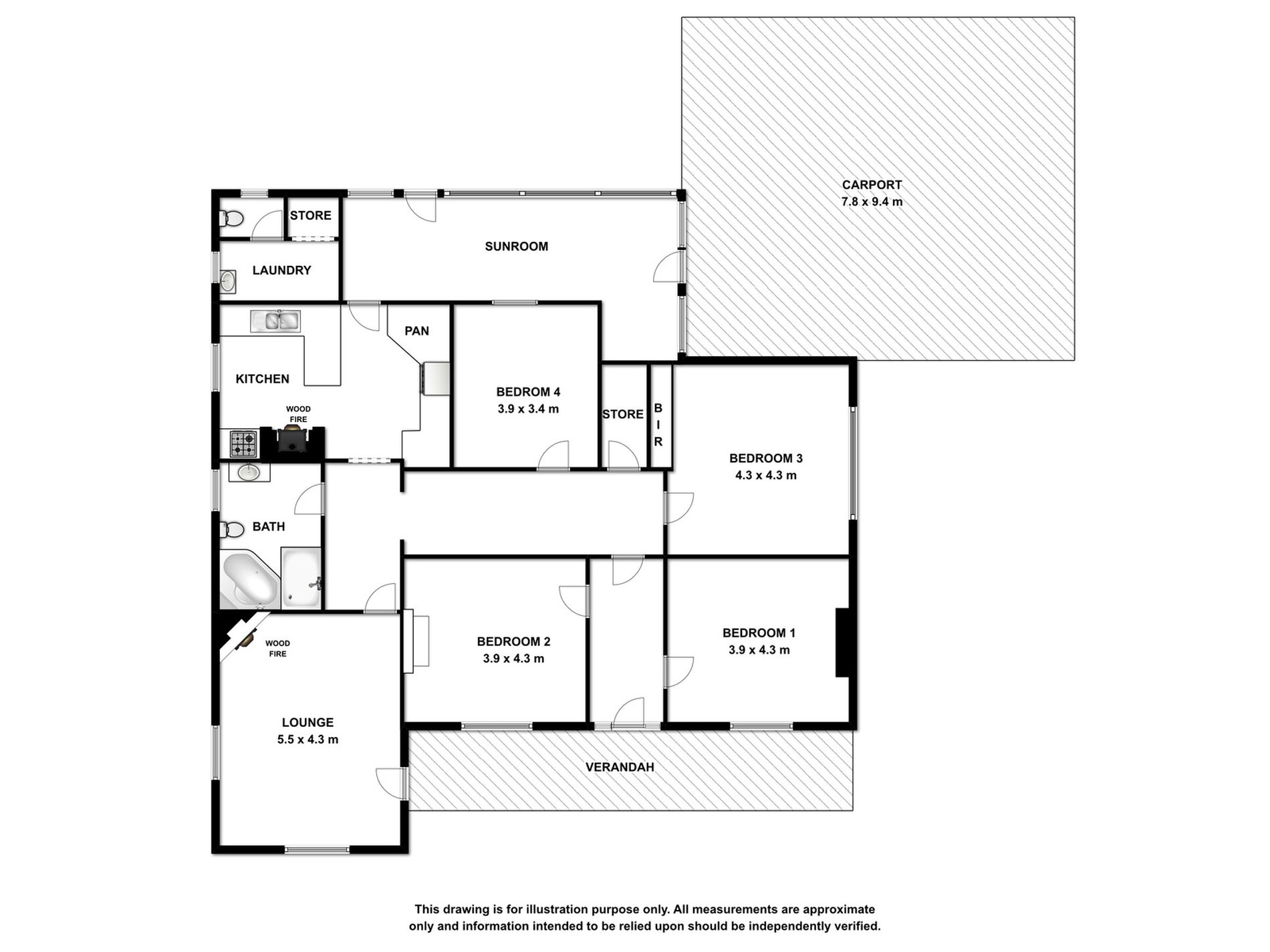 Across from the sunroom is a stone outbuilding with fifth bedroom with gas fireplace as well as two more storage rooms. Away from the house along the driveway is a four bay aluminium shed with roller doors, cement floor and power. Next to this is another large stone outbuilding.
