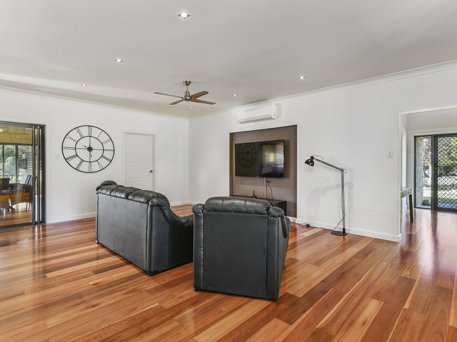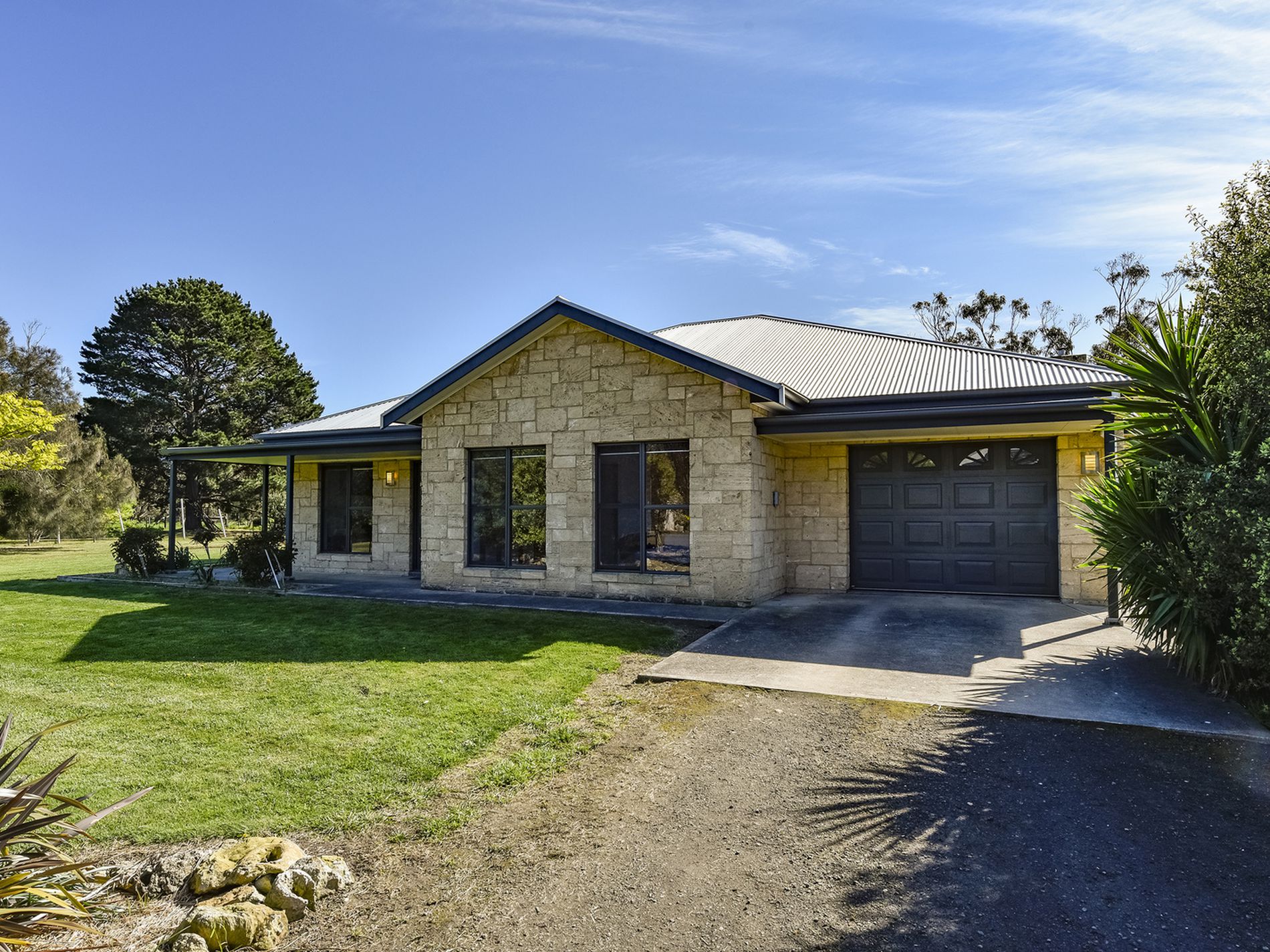 A small home office on the left and private theatre room next before opening into the main part of the family living, dining, and an impressive kitchen. Slow combustion fire, Split system and ceiling fans, and direct access to the garage under the main roof.