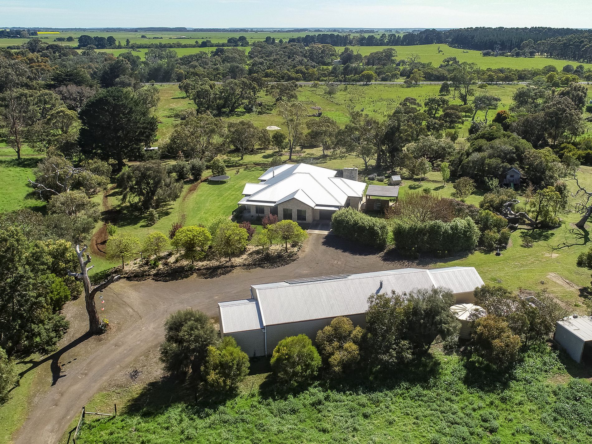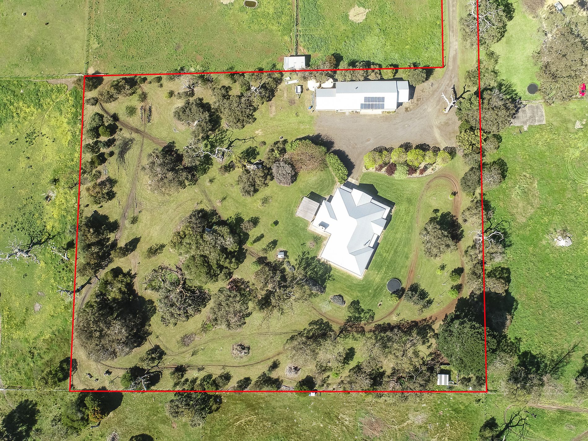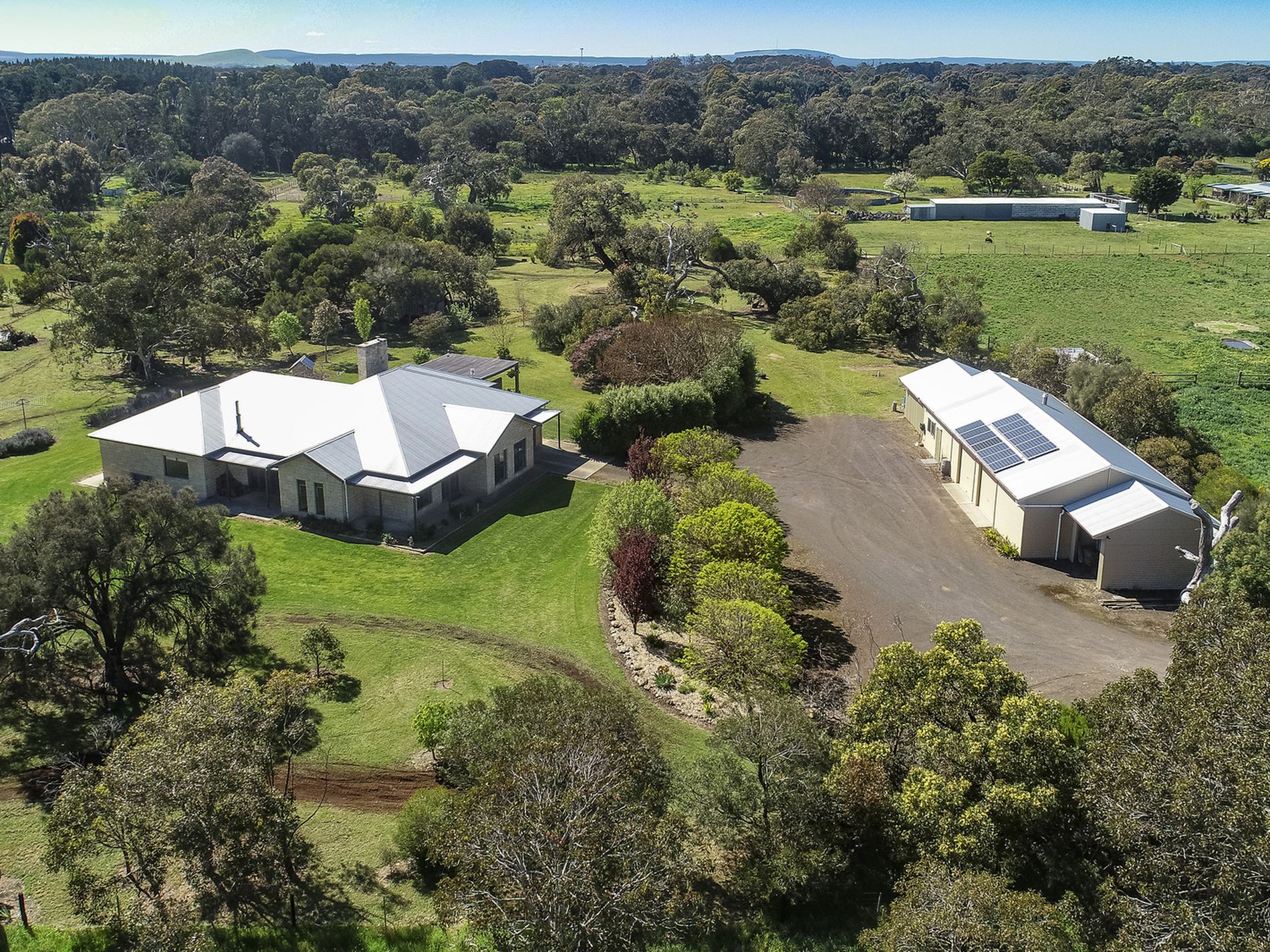 A 3kw Solar system [13 panels] is on the shed. 10,000-gallon rainwater supply to the house and bore supplying the toilets and well-established natural bush style garden. Automatic watering system and turf valves to keep the yard green.