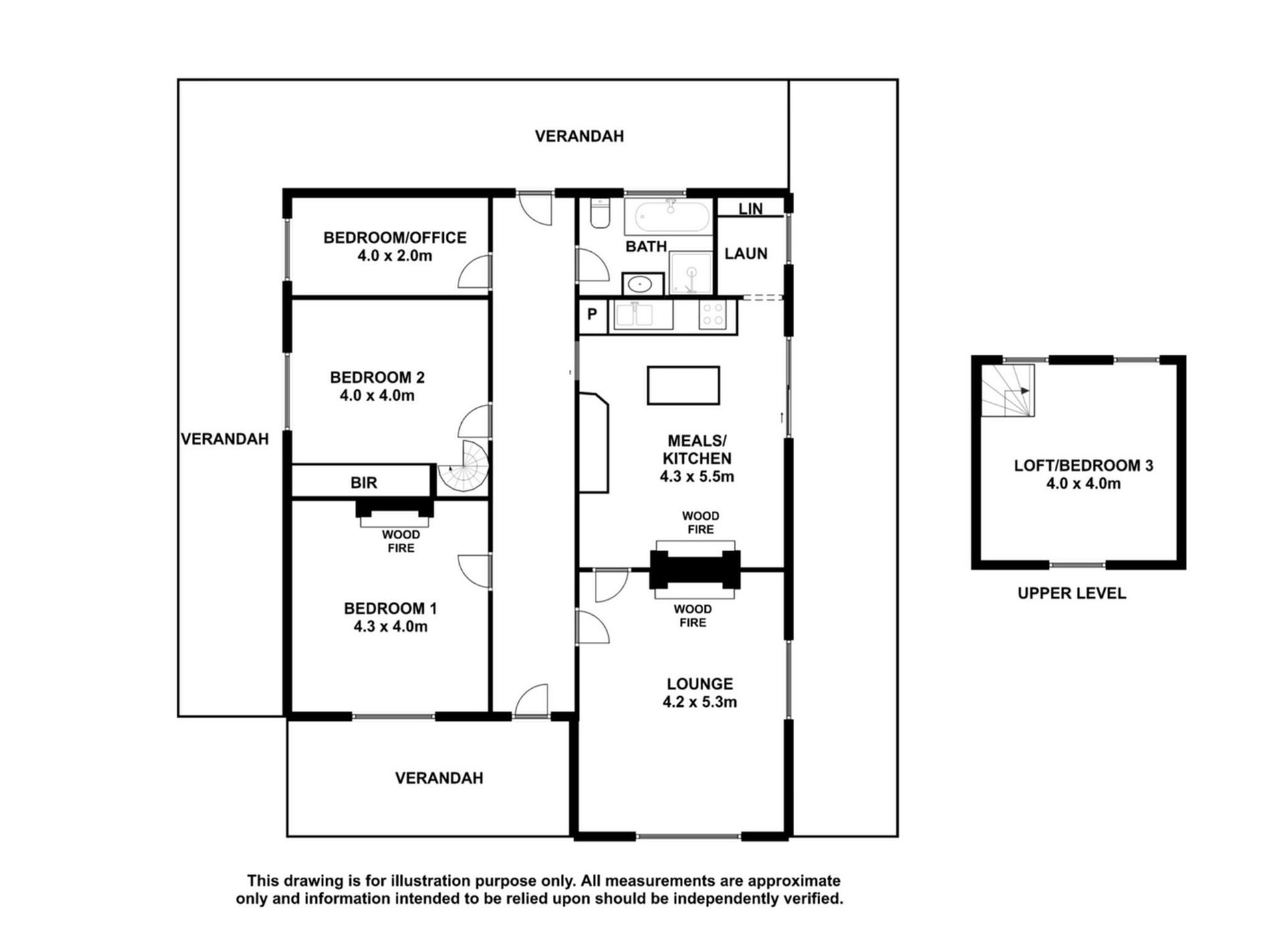 2nd storey with large spare previously used as a bedroom with spiral stairs. A built in cupboard and roof cavity access.