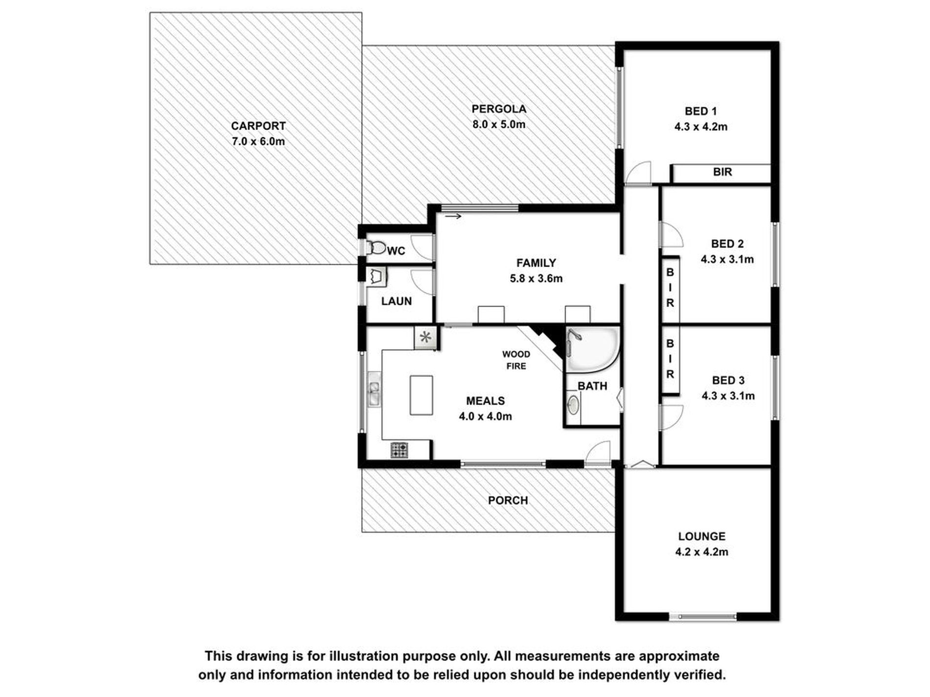 There is an 8mx5m semi enclosed rear gable roof pergola with cement floor, lighting and ceiling fans, it is a completely private area enclosed on three sides including the adjoining 7mx 6m double carport which is secured by a double roller door from the road.