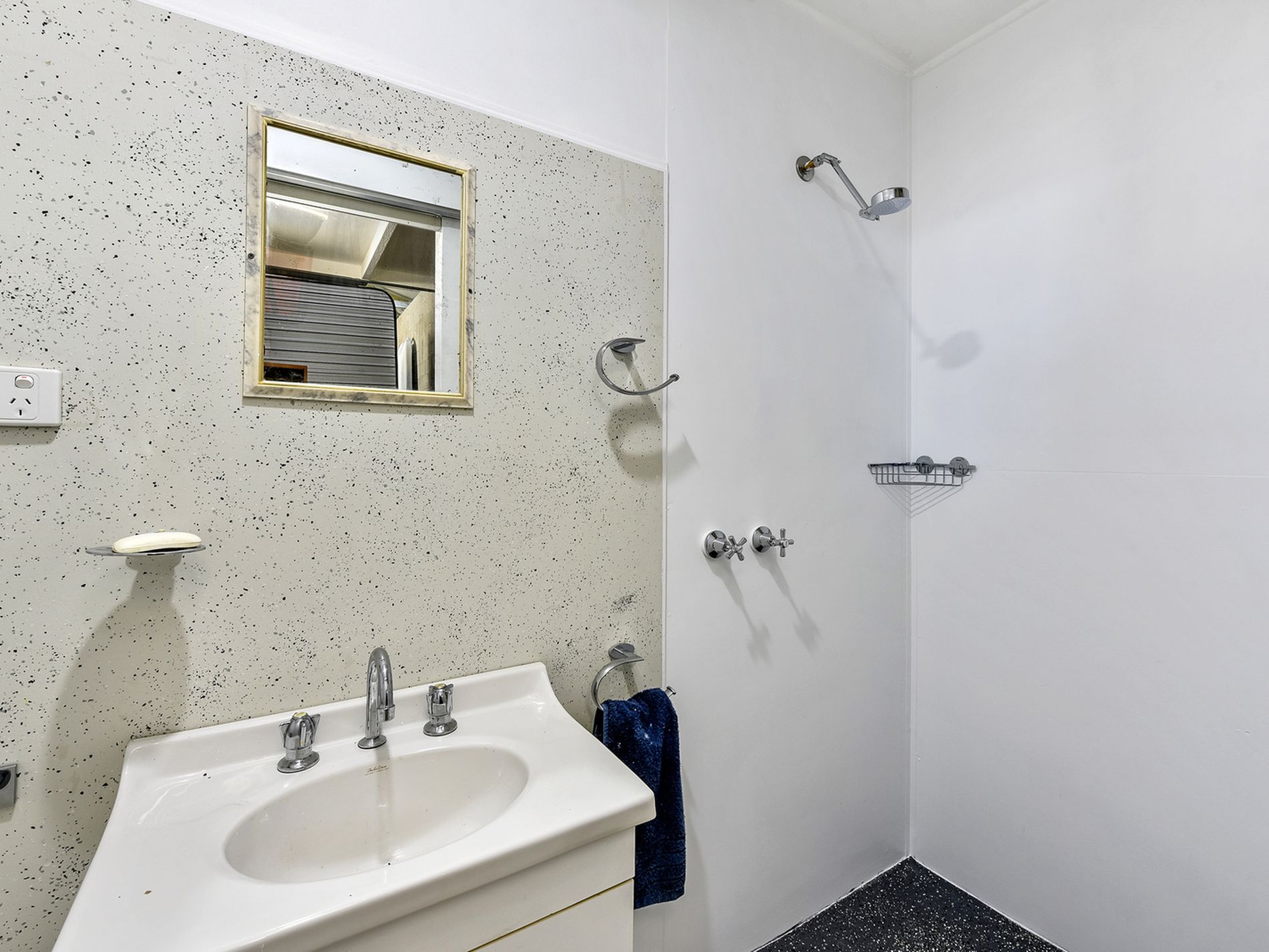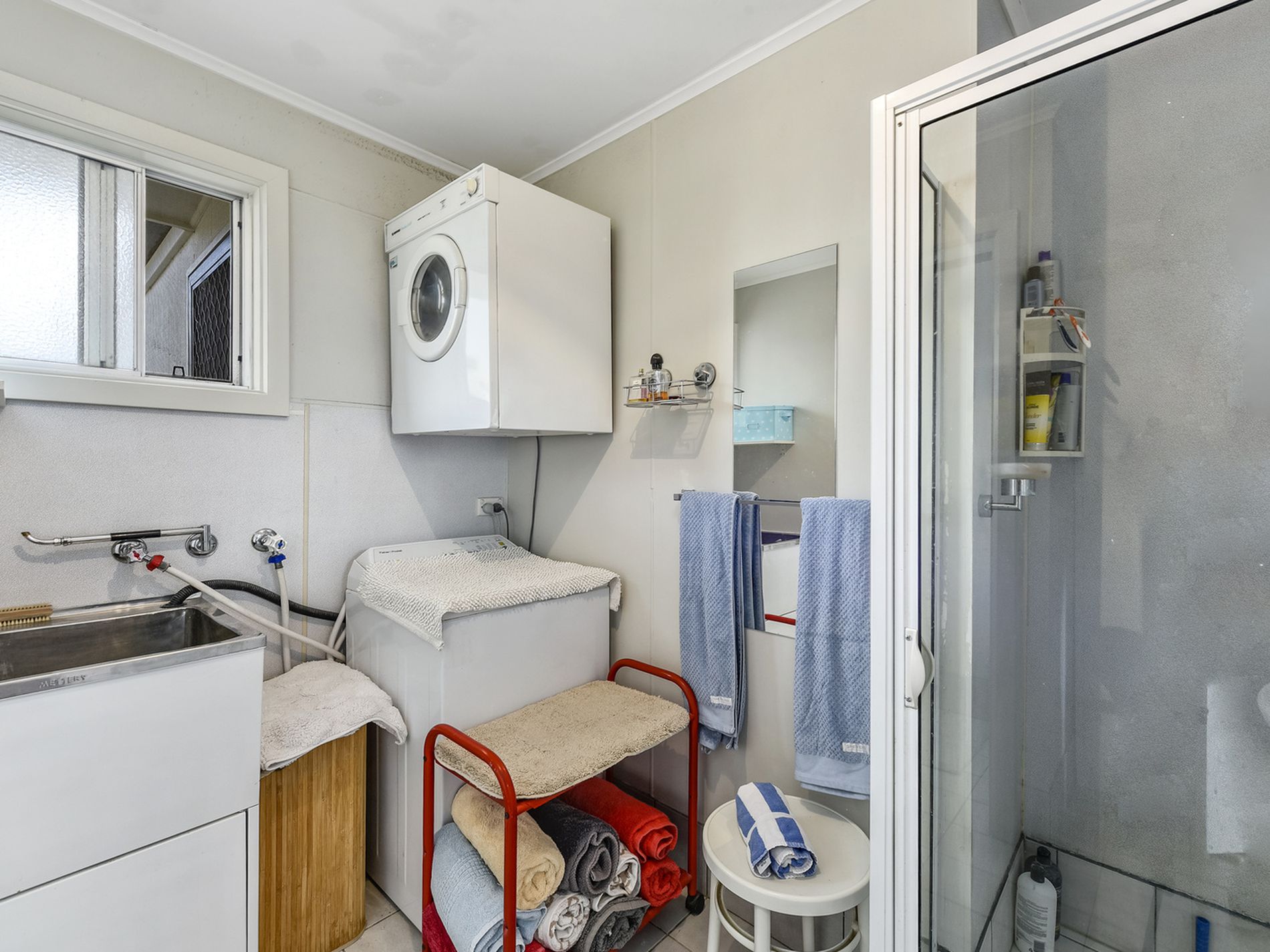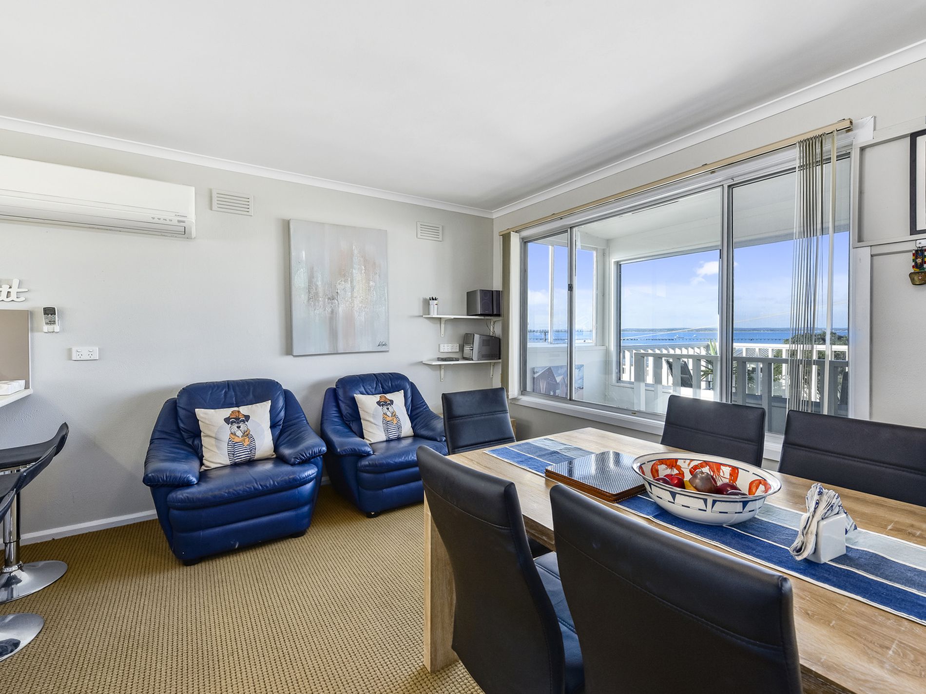 Offers two levels of family living. The upper level is light and bright with Two queen size bedrooms with built in robes, the master has sea views. Kitchen with electric cooking, pantry and breakfast bar. Open dining with views over the bay and a sliding door out to the balcony. A large sun filled lounge has a timber look vinyl floor and blinds and a rear access door with a ramp to the rear yard. The bathroom / laundry has a shower, vanity and wash trough and a separate toilet. The feature of this home is the stunning, spacious front balcony with spectacular ocean views. It is semi enclosed with stacker doors which makes this an all-seasons special place to gather with family and friends.