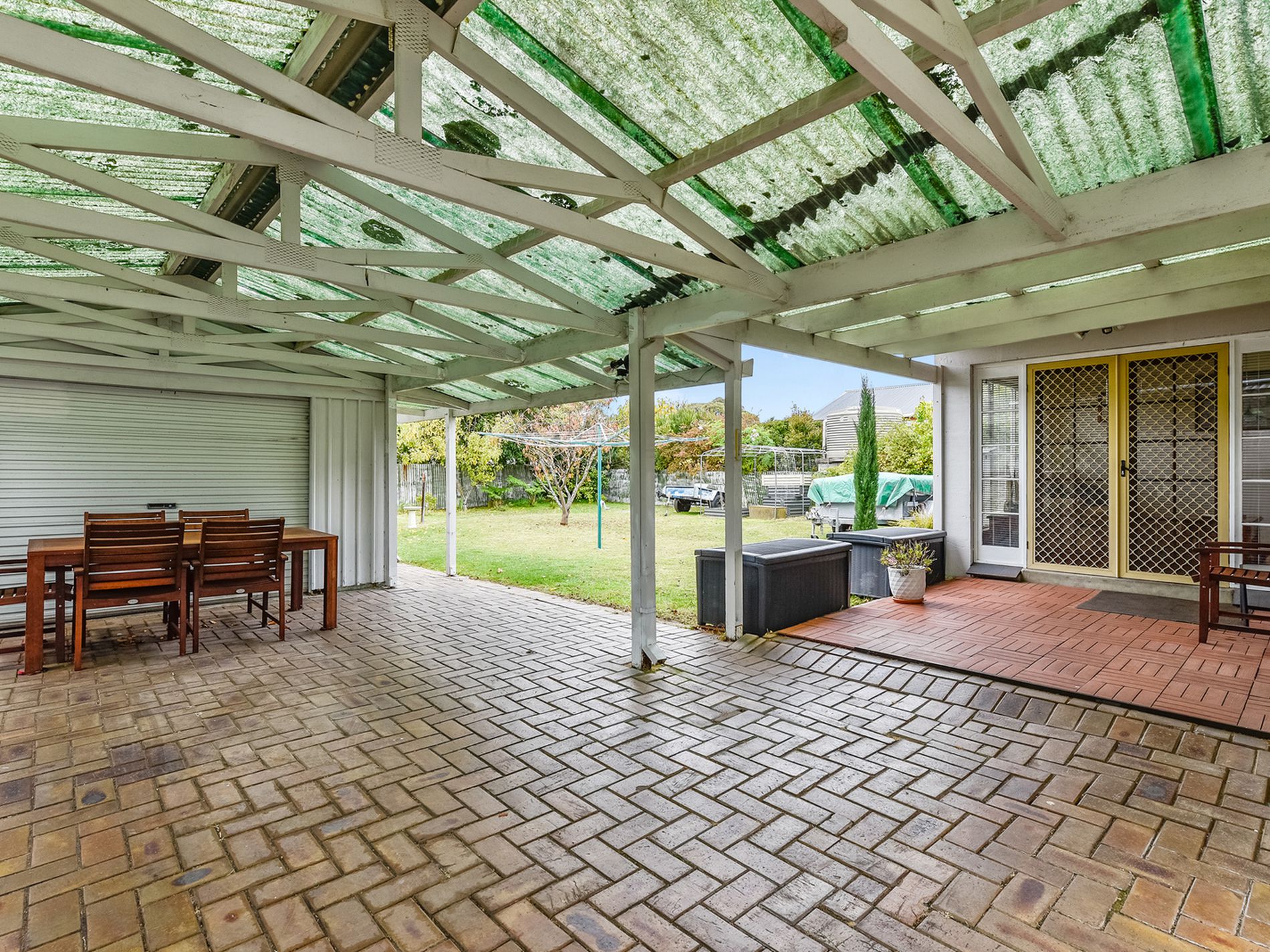 Out side a long , paved driveway runs along the side of the home, it has a double carport attached to the home and leads to a rear 12x4m2 iron shed with power, cement floor and roller door. The fully enclosed rear yard has a 5000 gallon rain water tank that can be connected to the home, a new water softner and various fruit trees. The garden has been planted out with hedging to provide privacy while also providing a lovely setting.
