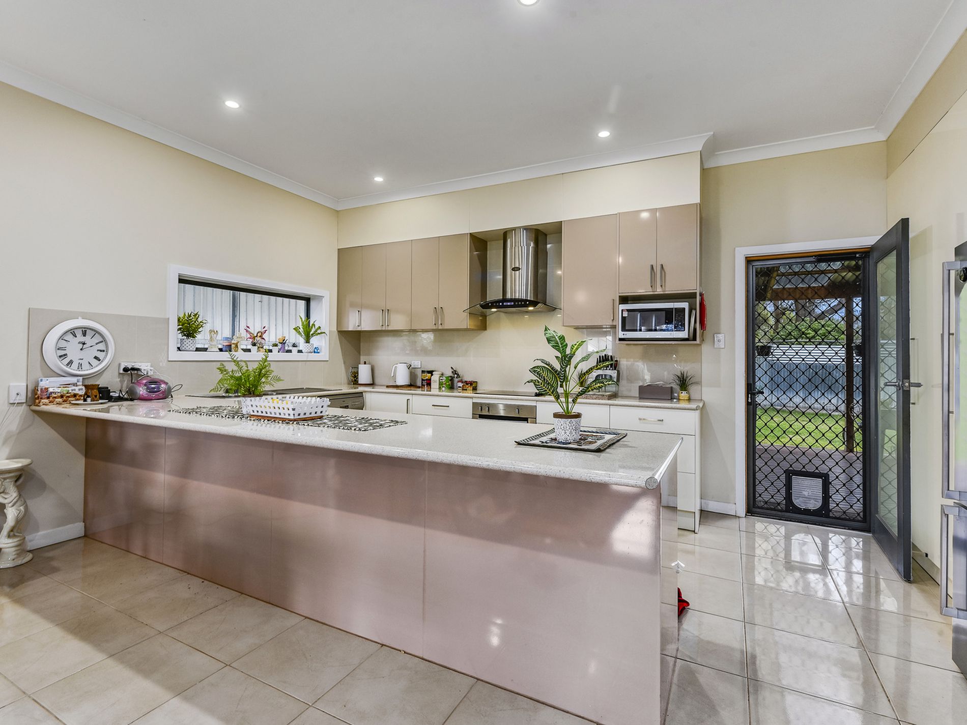 The home has a large open plan living/dining / kitchen area with a tiled floor. The quality kitchen has ample bench space for prepping and serving and so much storage in soft close drawers. The appliances include an under bench oven, ceramic cooktop, range hood and dishwasher. A large pantry is adjacent with floor to ceiling cabinetry you will be able to hide away all of the clutter.