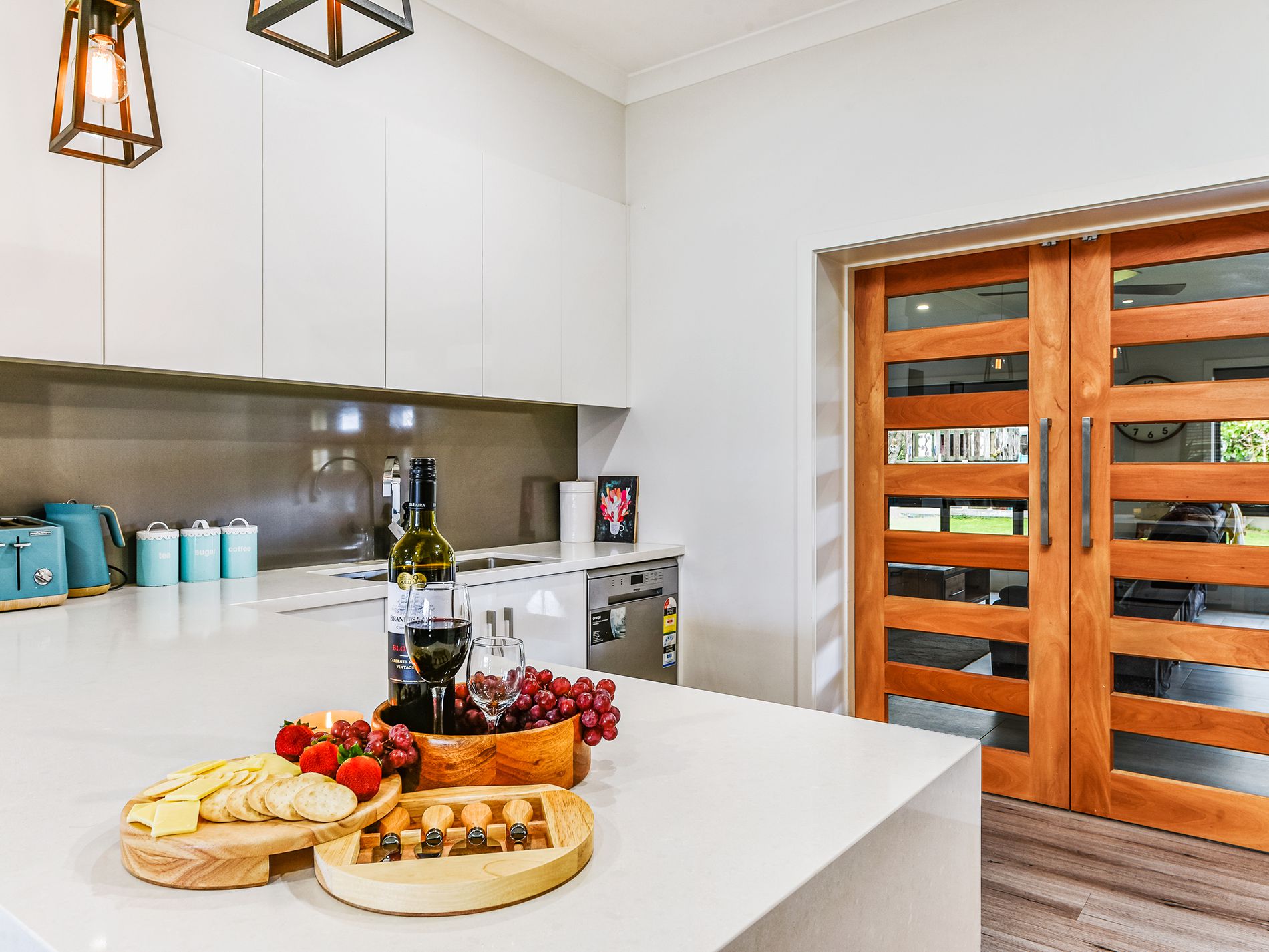 The Kitchen is central to the home and foodies and entertainers will enjoy being amongst the family action. Omega Dishwasher, Oven and H/Plate, double square industrial sink, soft close doors and draws and stunning pendant lights over the Caesarstone bench top breakfast bar. The main bedroom is carpeted and offers walk around built-in wardrobe, ceiling fan, TV outlet and floor to ceiling tiled ensuite with large shower, soft close timber vanity and toilet.