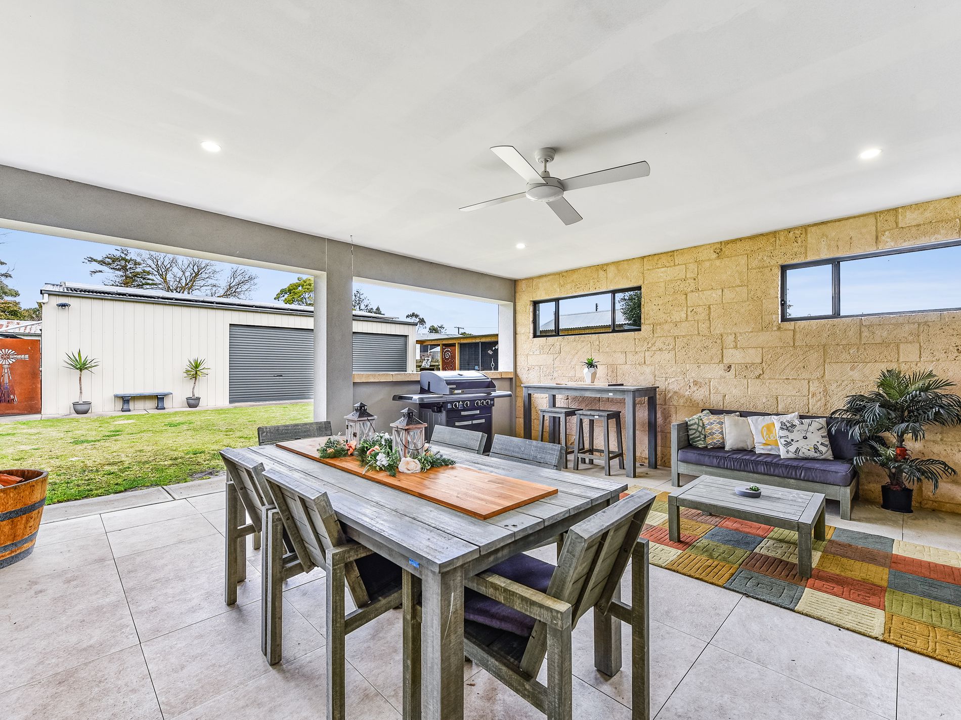 Extended living area through regal double timber doors into the stunning tiled family room with West Australian Limestone feature wall, large slow Combustion fire and double glaze windows. And who doesn’t love to enjoy venturing outdoors and opening up glass stack a doors and experience an amazing Alfresco outdoor area. Tiled and ticking all the entertaining family needs.