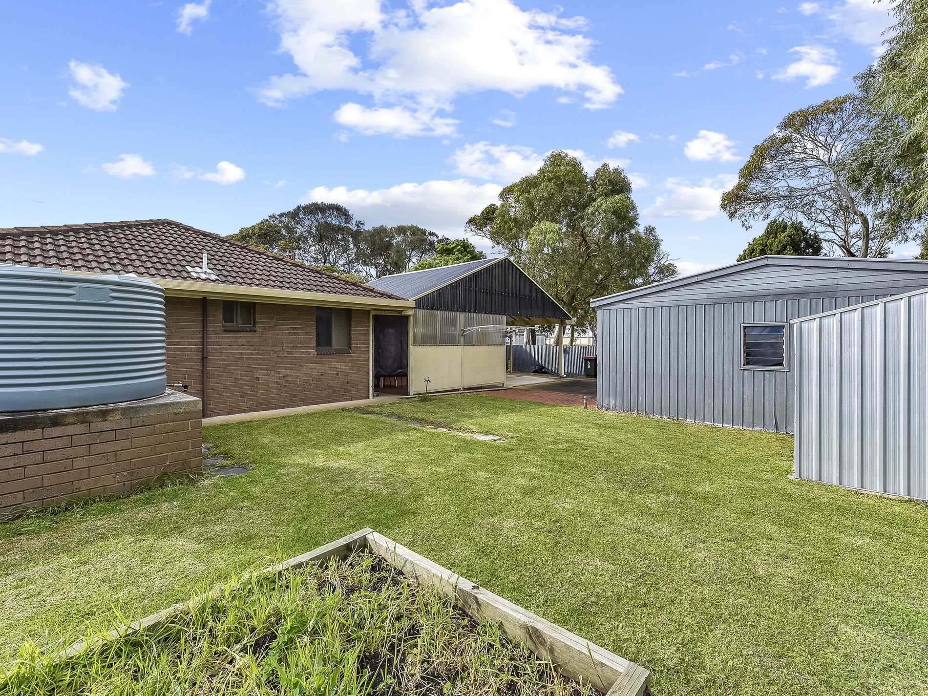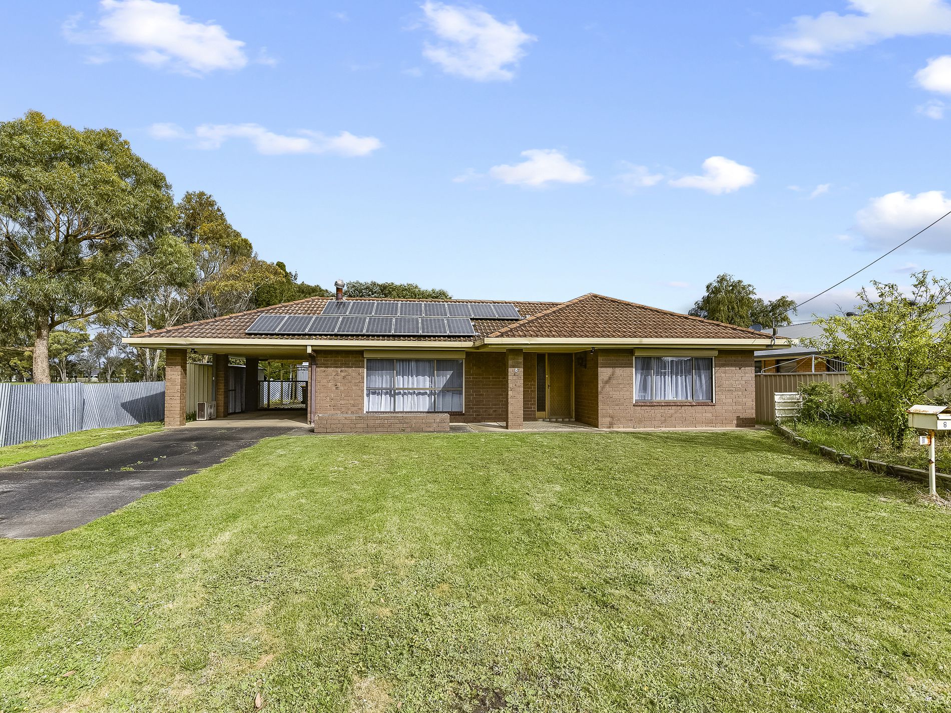 A spacious front entrance leads to a generous carpeted lounge and formal dining area. You have reverse cycle air conditioning in here and a slow combustion wood fire keeps you cosy through the winter months. There are three good size bedrooms all are carpeted and the main has a built in robe and its own reverse cycle air conditioner. A tiled bathroom has a separate shower, bath and vanity. The renovated Kitchen is a cooks delight with plenty of bench space, breakfast bar, drawers galore and a walk in pantry. Cooking is electric and a dishwasher makes cleanup a breeze. Adjacent is a second living space which leads to a tiled laundry and second toilet. A sliding door gives access to the paved pergola which extends from the carport under the main roof allowing plenty of parking for cars, boats and caravans. A three bay iron shed with sliding doors and workshop area sits in the rear yard with access through the carport along with woodsheds. A 3Kw solar system keeps the pesky power bills down and a small rainwater tank has a tap for drinking water if desired. Electric roller shutters along the front of the home add security and are great for keeping out the heat and the cold.