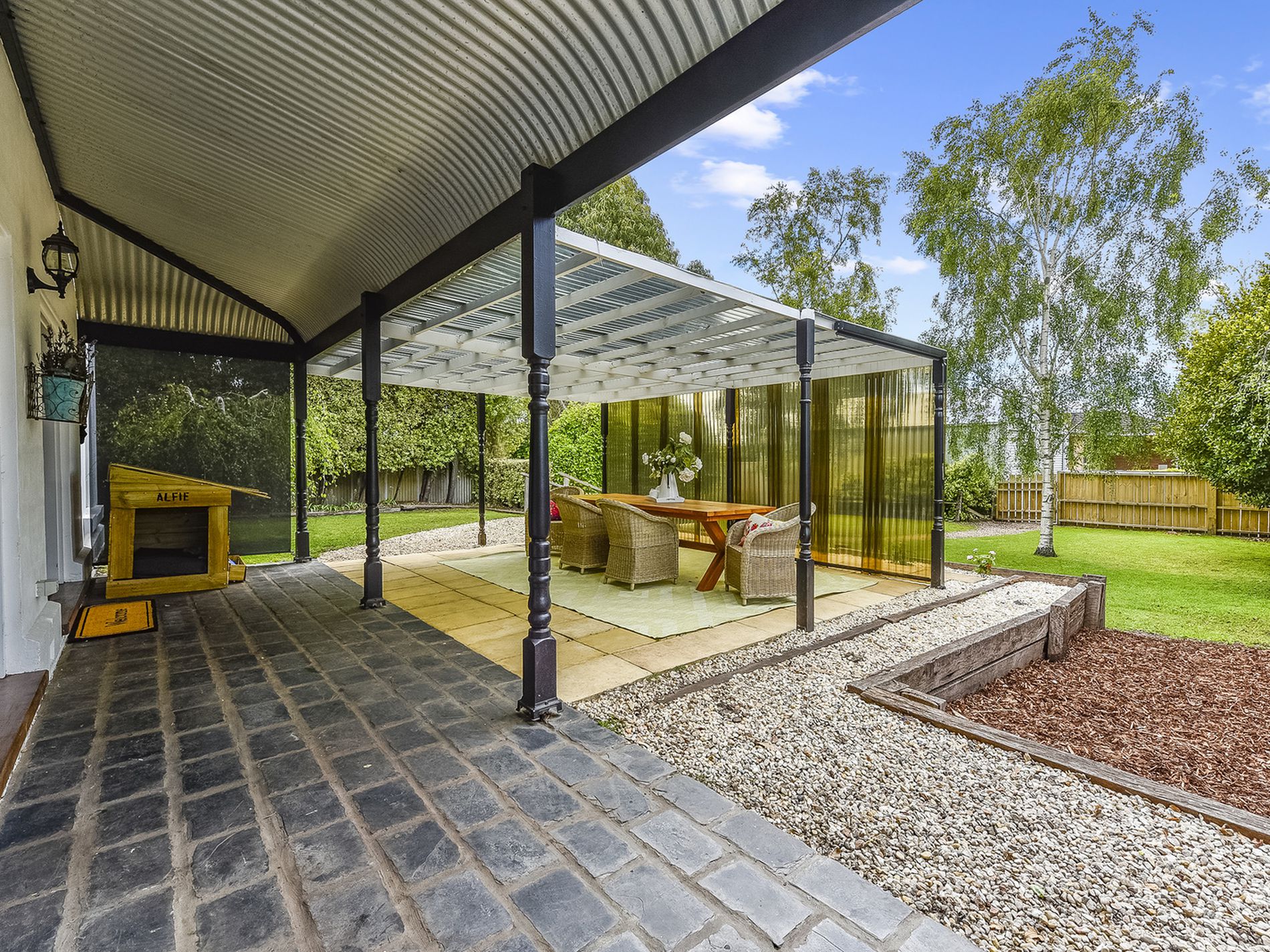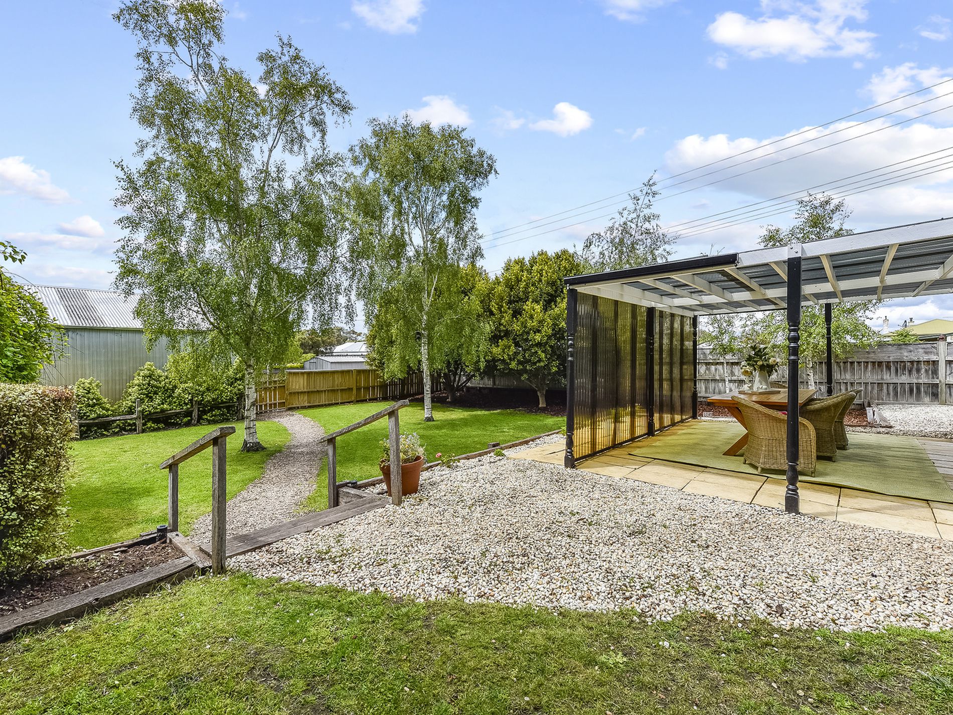 It is a peaceful and tranquil setting where you can entertain all the family and friends, watch the kids and animals run around on the lawn or just quietly sit amongst the leafy serenity and enjoy a cup of tea and get lost in a book. A fully enclosed rear yard is private and secure for pets and the small loves of your life and has a PA door to the four-bay high clearance shed at the rear of the property. Room for the caravan, boat, and cars. This is accessed of the street onto a gated driveway. A slow combustion wood fire and reverse cycle air conditioner heat and cool the home and a bore allows you to water and maintain the beautiful green, lush garden all year round.