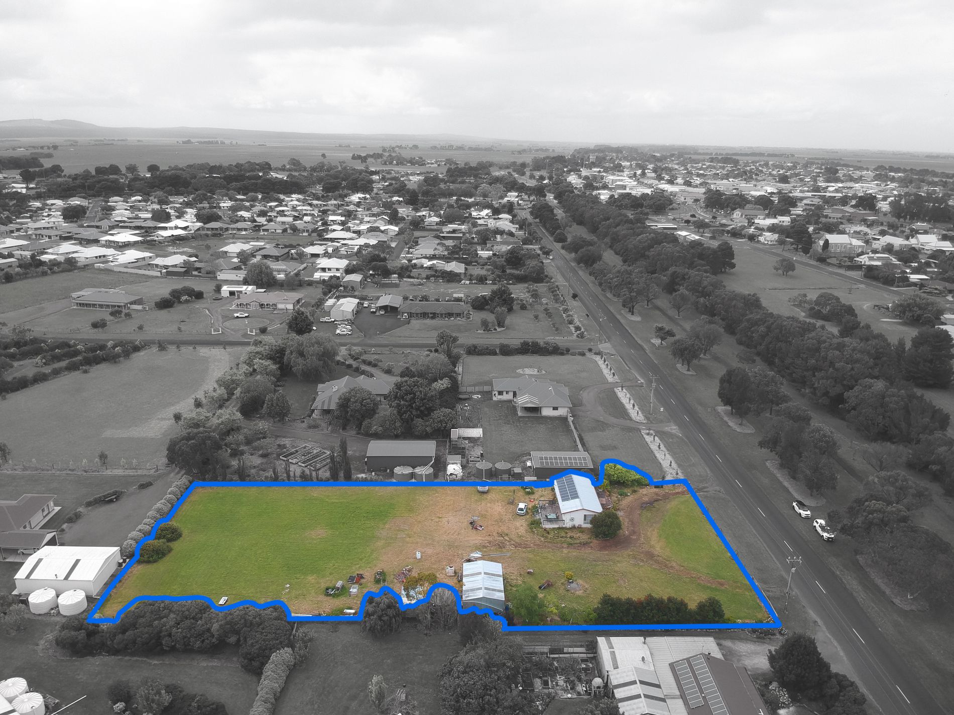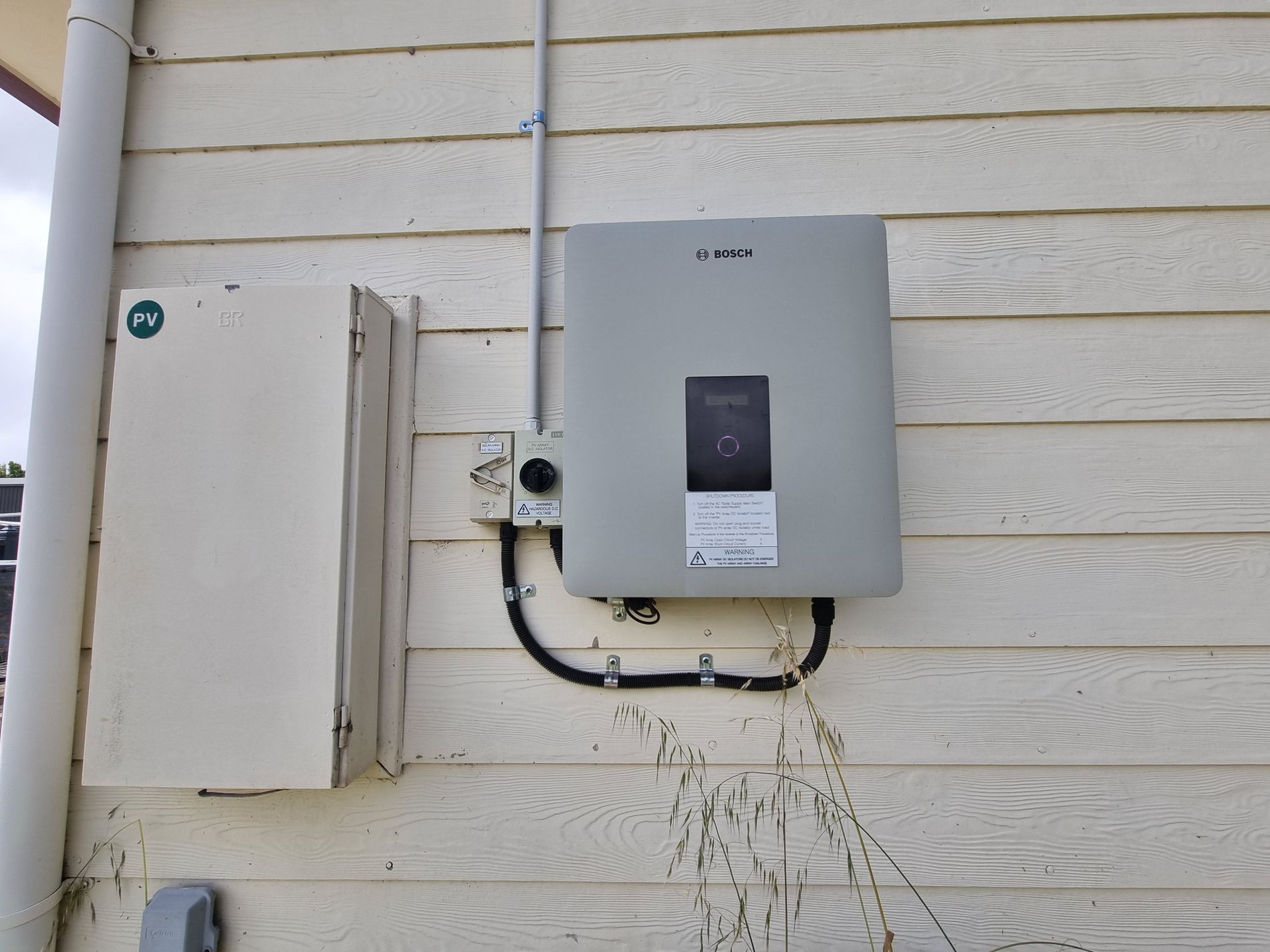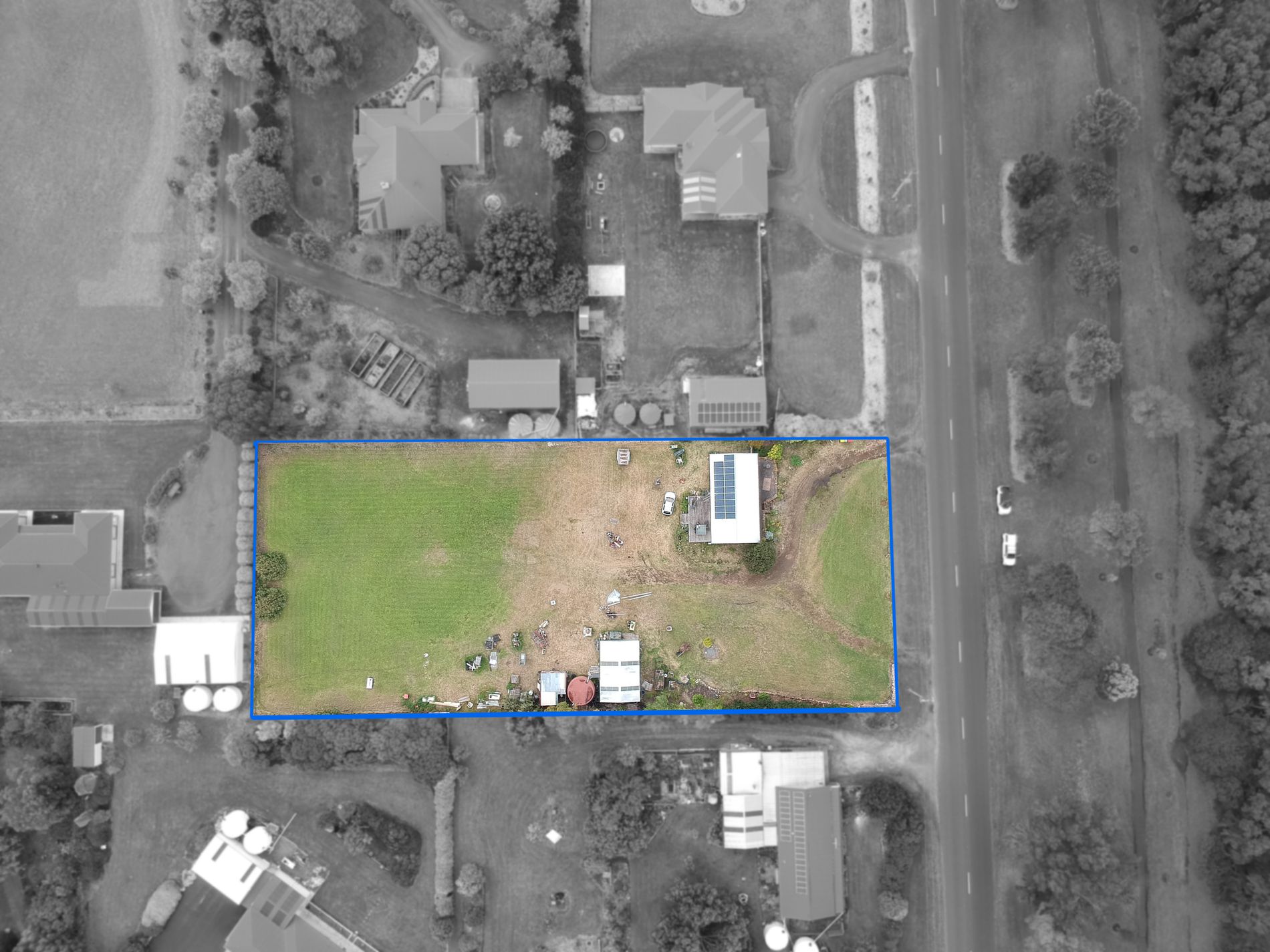 16 Solar panels of 4.6kw. 10,000-gallon rainwater and equipped bore to cover yard, garden and the toilet is on bore only. Biocycle septic waste system. Double galv. shed with power.