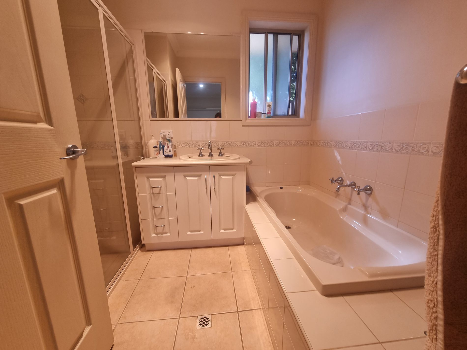 Bathroom with bath and separate shower. Large main bedroom with ample built-in robes.
