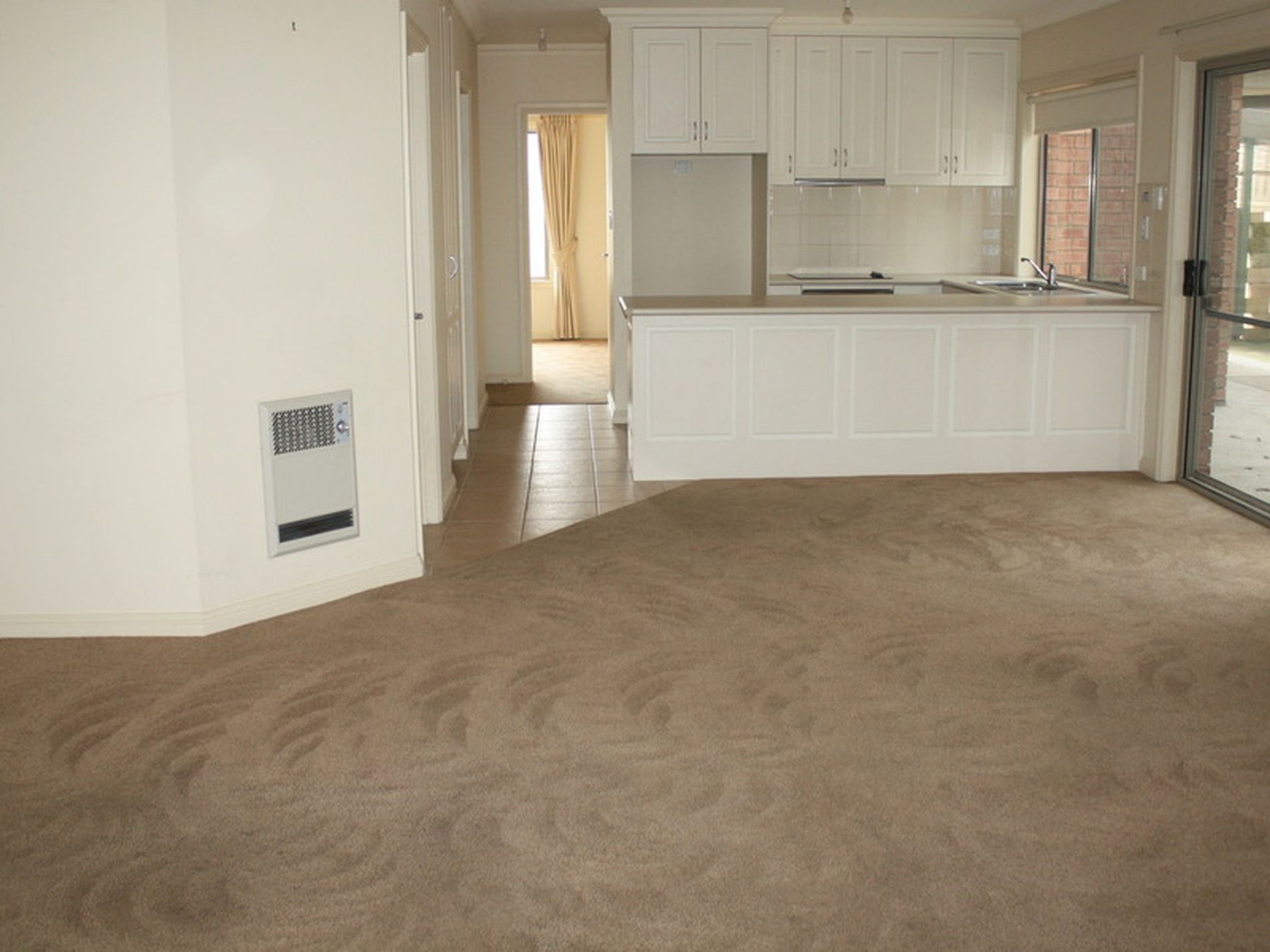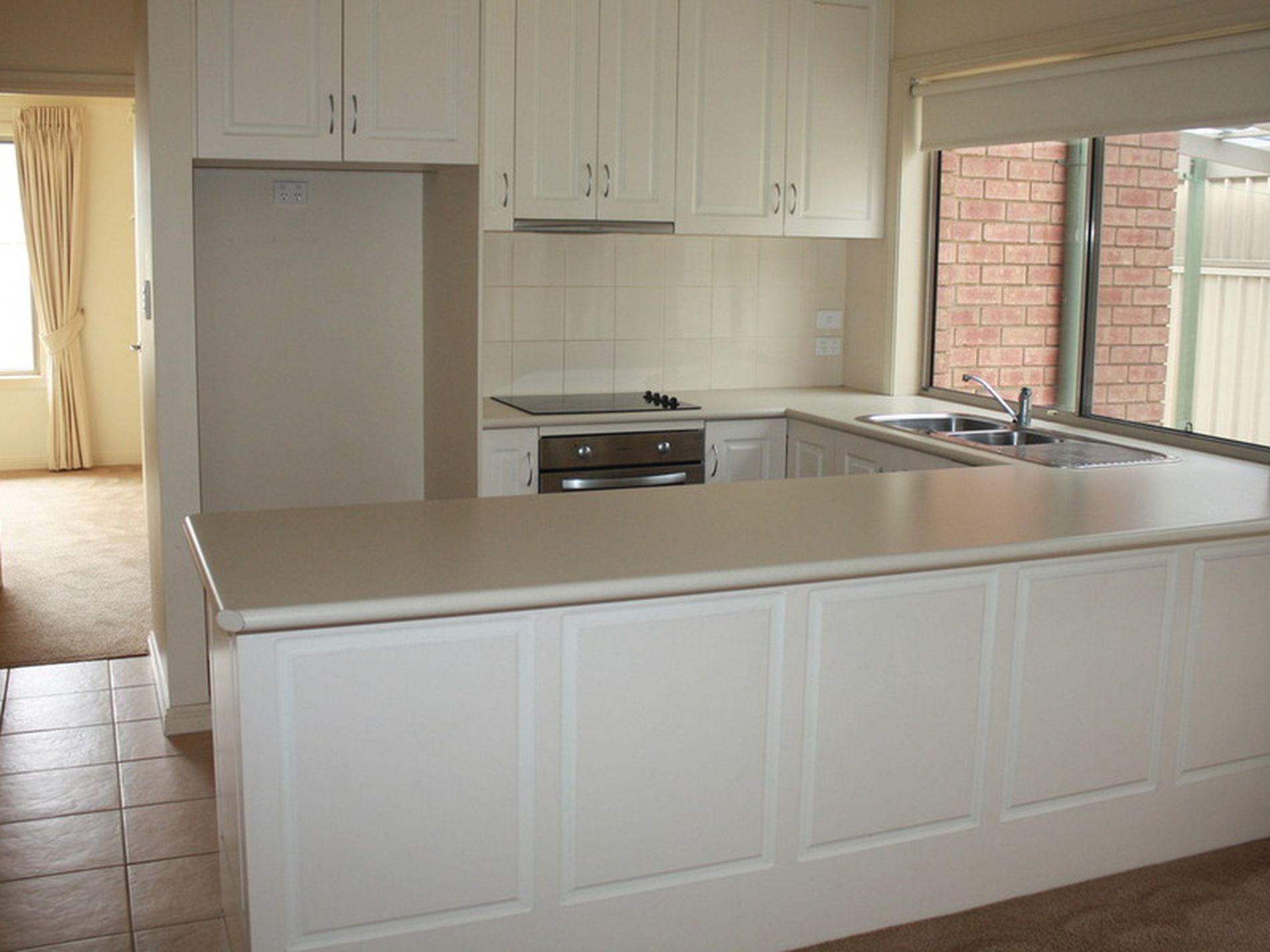 Open plan living/dining/kitchen, compact kitchen with good storage and bench space. Ceramic top electric cooking plus under bench oven.