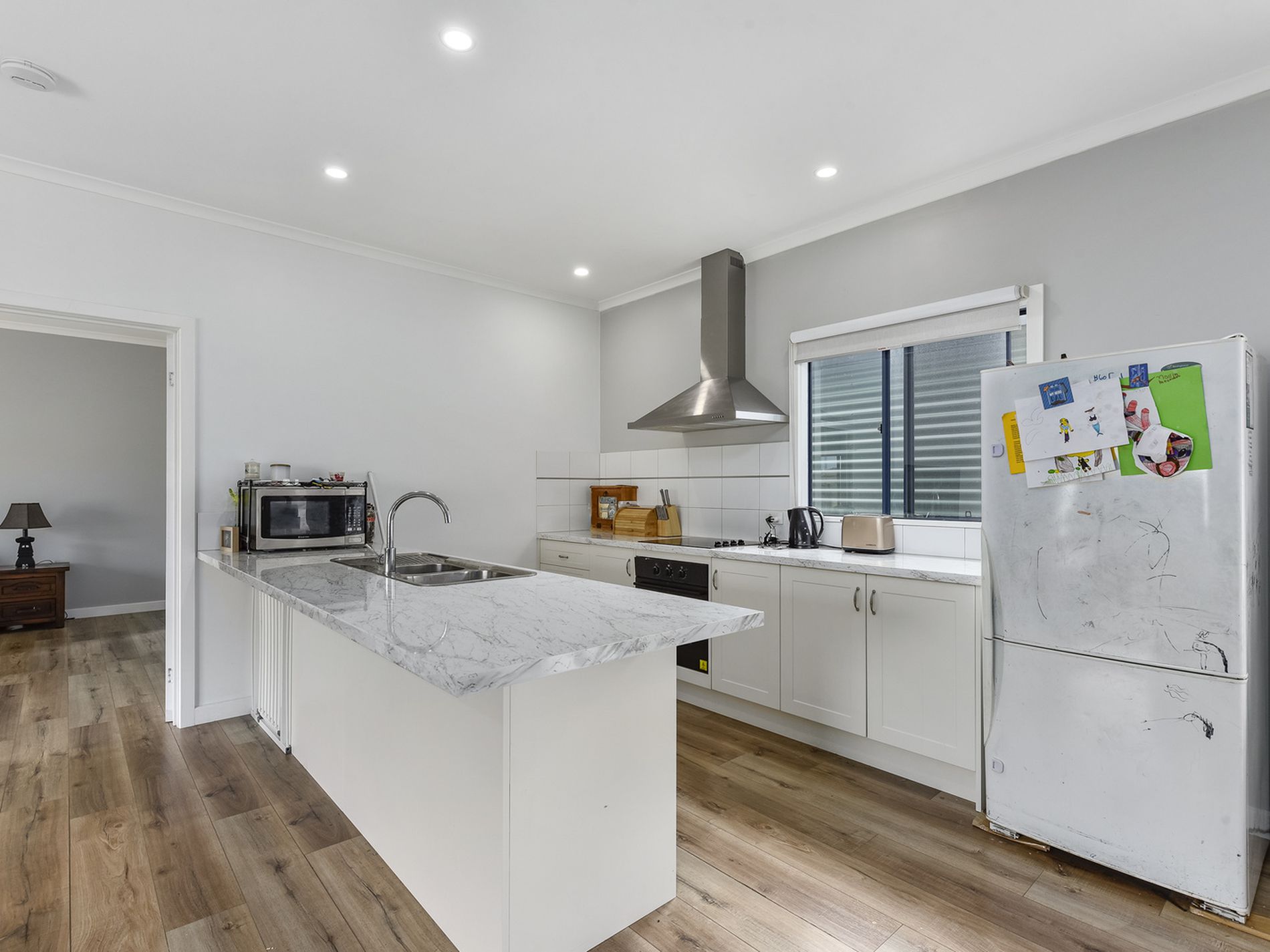 Outside there is a double Colorbond shed of 49m2 with a front roller door and rear storage room. The rear yard is private and sheltered with lawns surrounded by natural stone retaining walls. Currently tenanted at $350.00 per week until October 2022.
