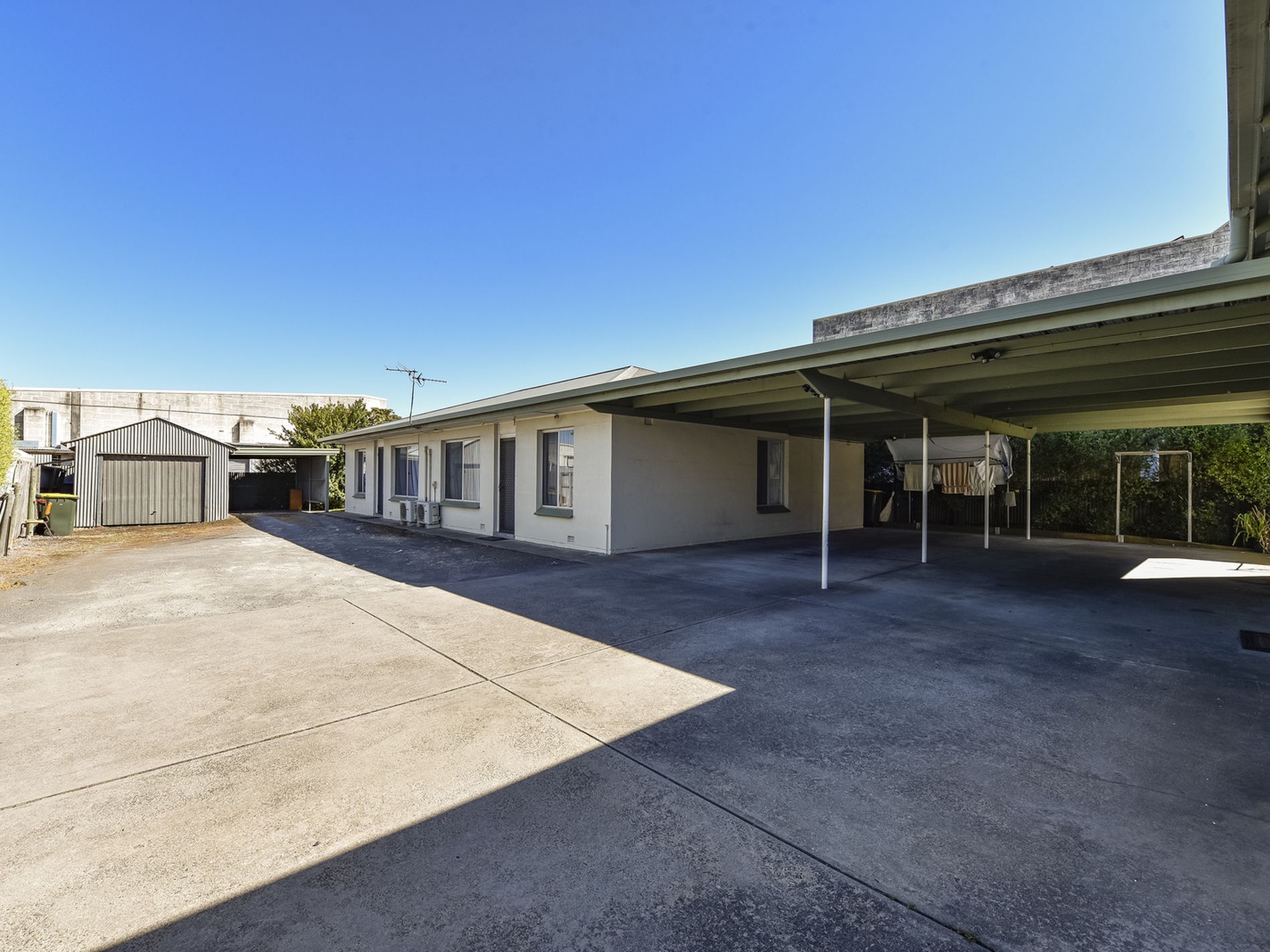 The residences are freshly painted stone buildings with iron roofs. There is a communal lock up storage shed and undercover parking for three of the units and the yard is easy care neat and enclosed.
