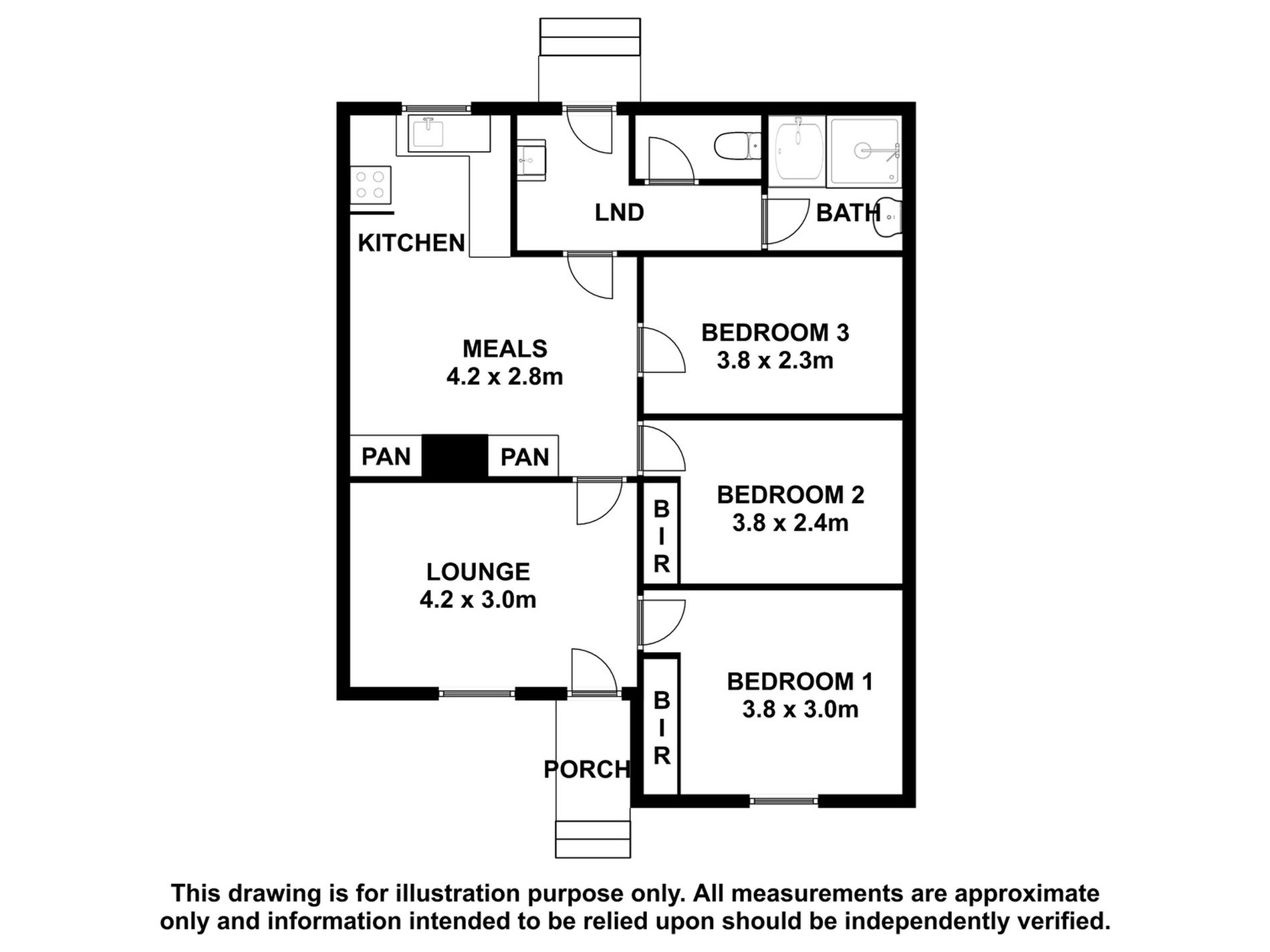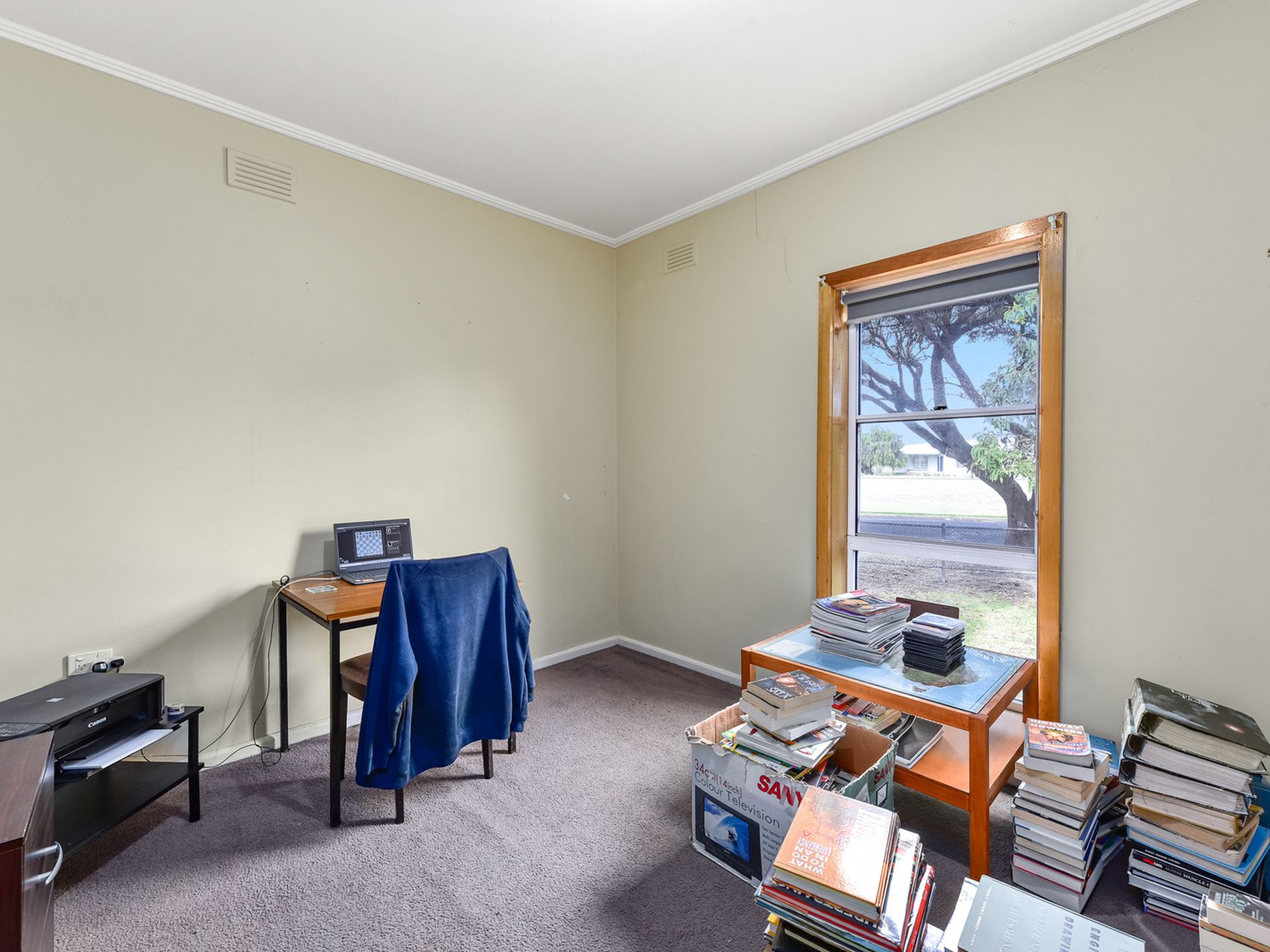 The front lounge is carpeted with a blind and electric heater. There are three carpeted bedroom with blinds and two with the carcass of built in robes.