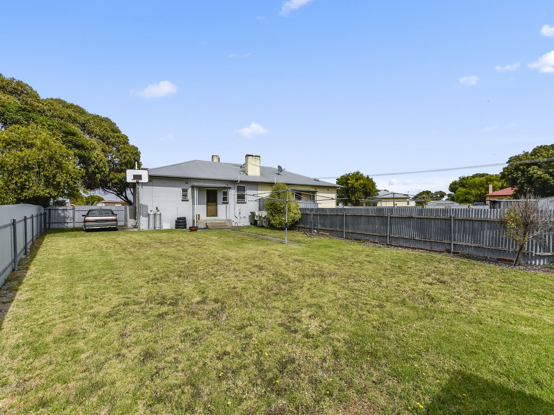 A small back porch leads to the fully enclosed rear yard which has a colour bond garden shed on a cement slab and double gate access from the driveway.