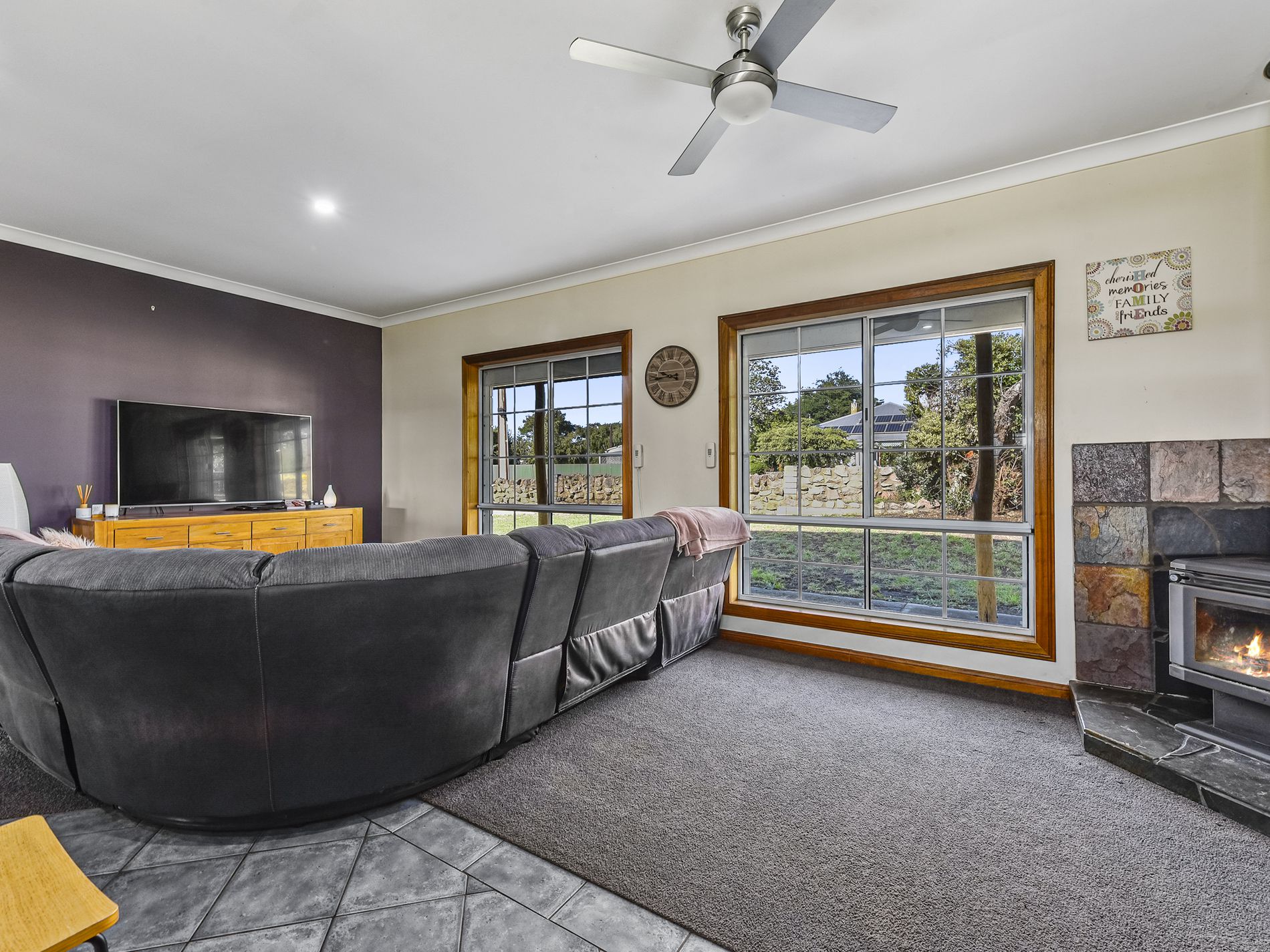 There are four generous size bedrooms, all carpeted ,Wake up in the main and sip your coffee overlooking the farmland with the animals and wildlife in the winter swamp. The two way Bathroom has a unique slate shower, bath, toilet, and timber vanity. A large Laundry has external access.