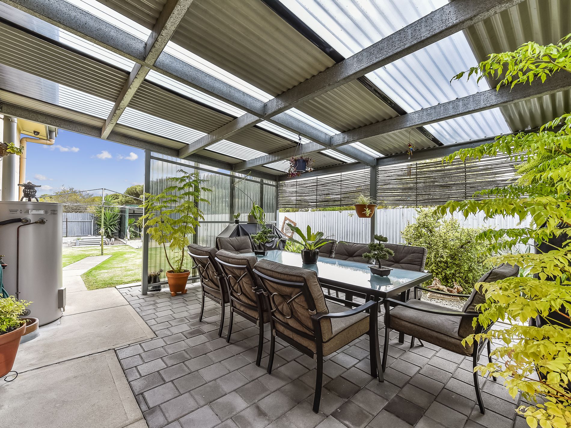Outside the home continues to impress. A great under cover area can be found on the northern side of the home, great for all year round entertaining. The rear of the yard features a picture-perfect garden with raised veggie beds, green house, and plenty of plants to keep any green thumb happy.