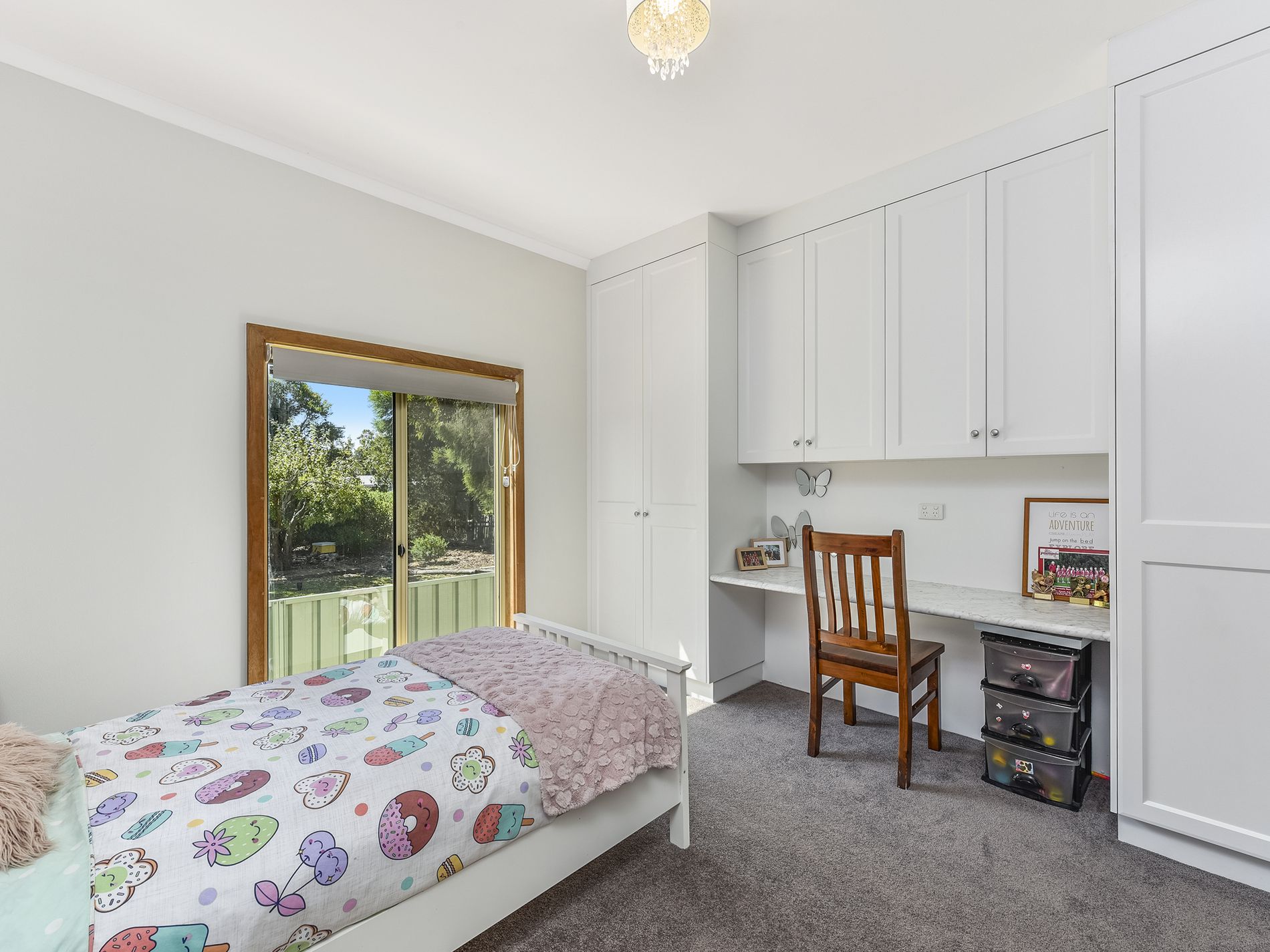 You have Four generous bedrooms all with quality built ins , all carpeted and with day/night blinds plus a carpeted office/fifth bedroom/playroom. The options are endless in this large family home.