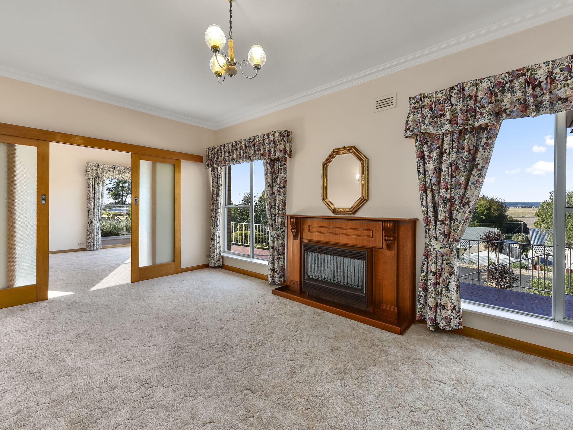 Front paved patio with stairs leading to the front door and opens into a separate entrance which flows into a lounge, sitting room and dining. Plush neutral carpet, electric fire heating plus ducted split system throughout.