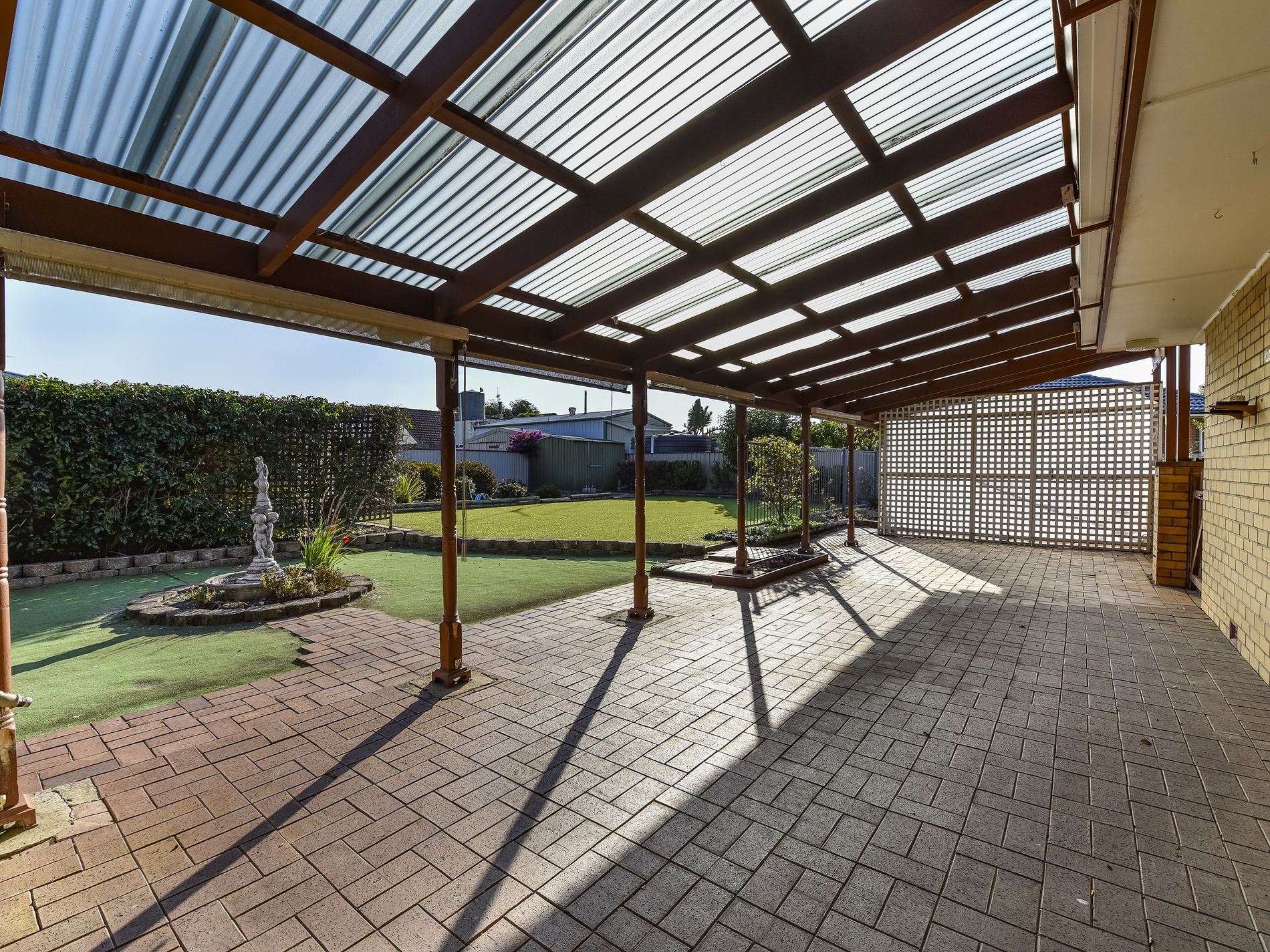 Secure yard with bitumen driveway off side street and an easy care garden maintenance